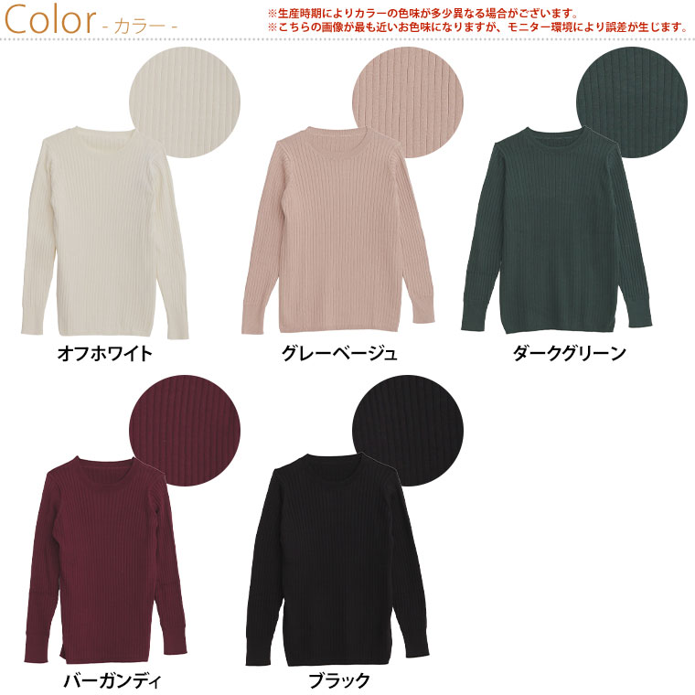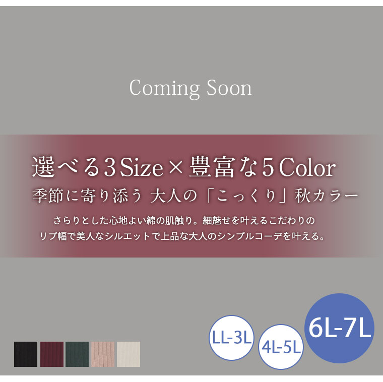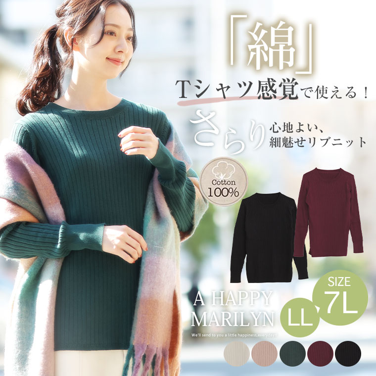 6. 大きいサイズ 綿100% 着回し自在な ラウンドネック リブニット