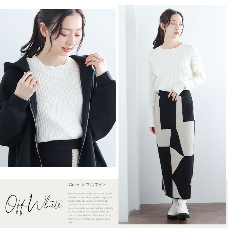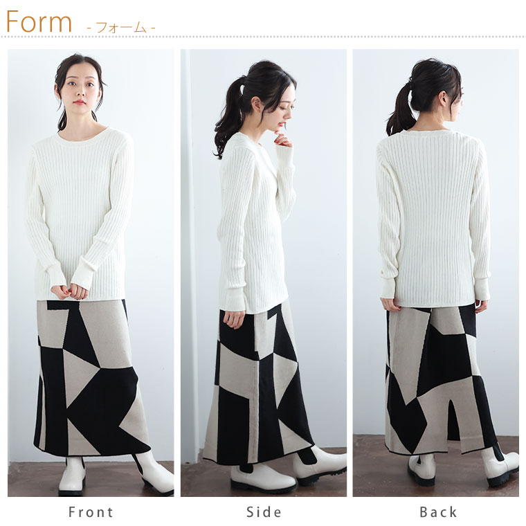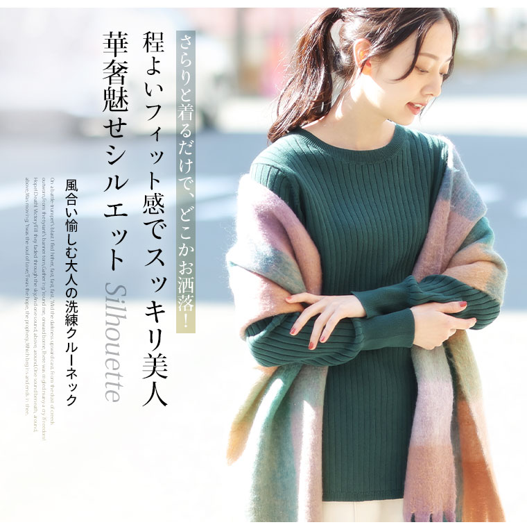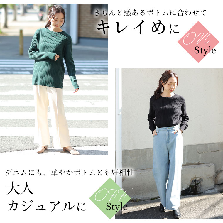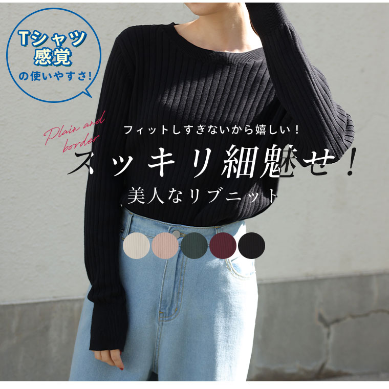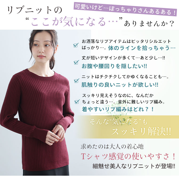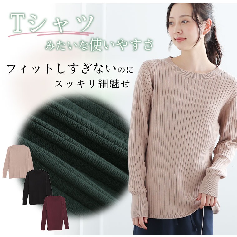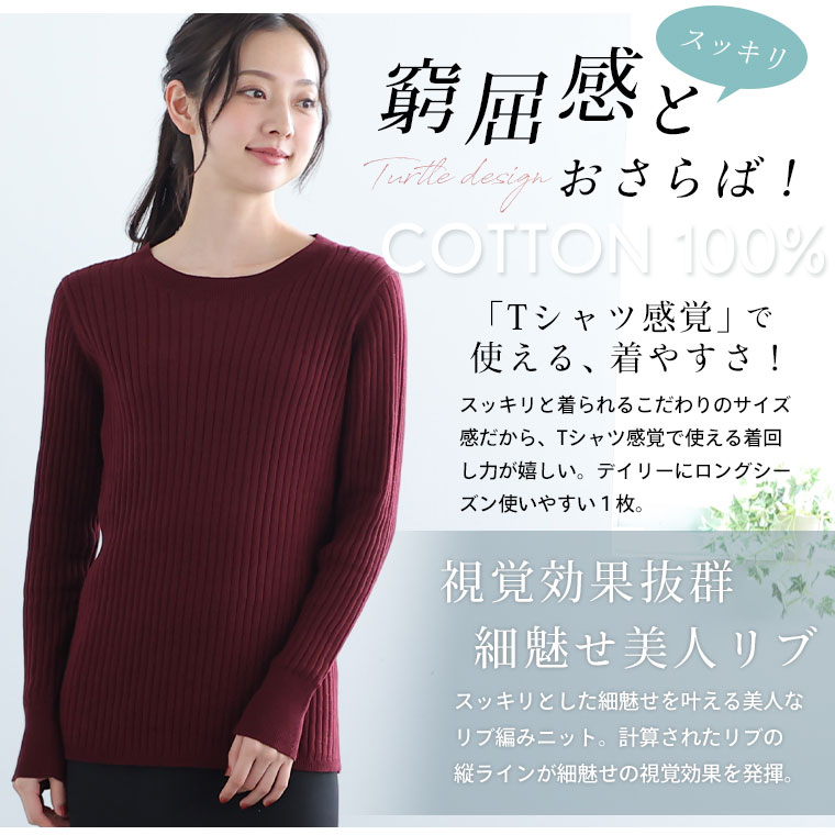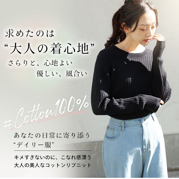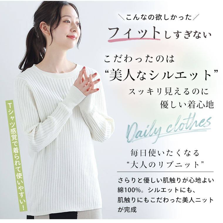 4. 大きいサイズ 綿100% 着回し自在な ラウンドネック リブニット