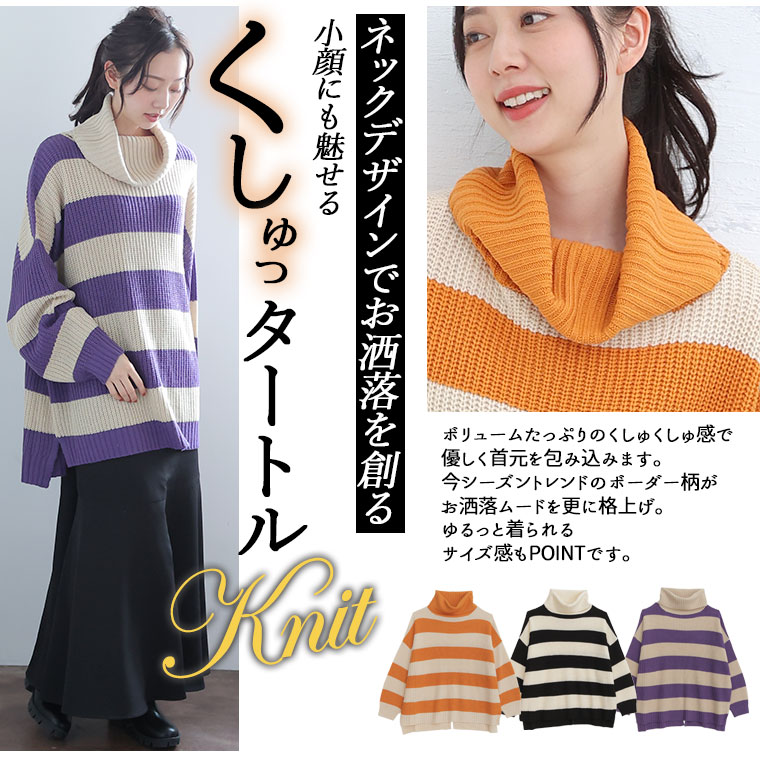 ネックデザインでお洒落を創る、くしゅっタートルKnit