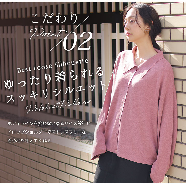 フィットしすぎないから使える!トレンドポロデザインニット