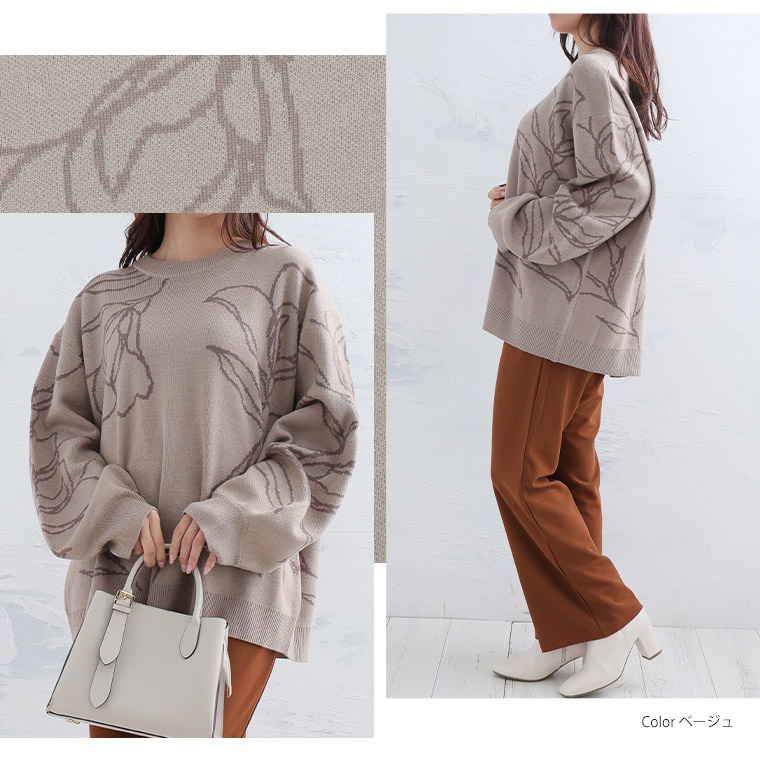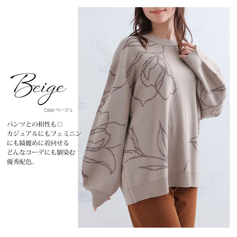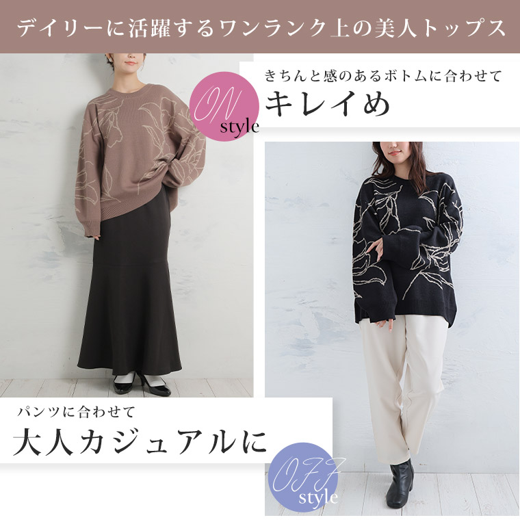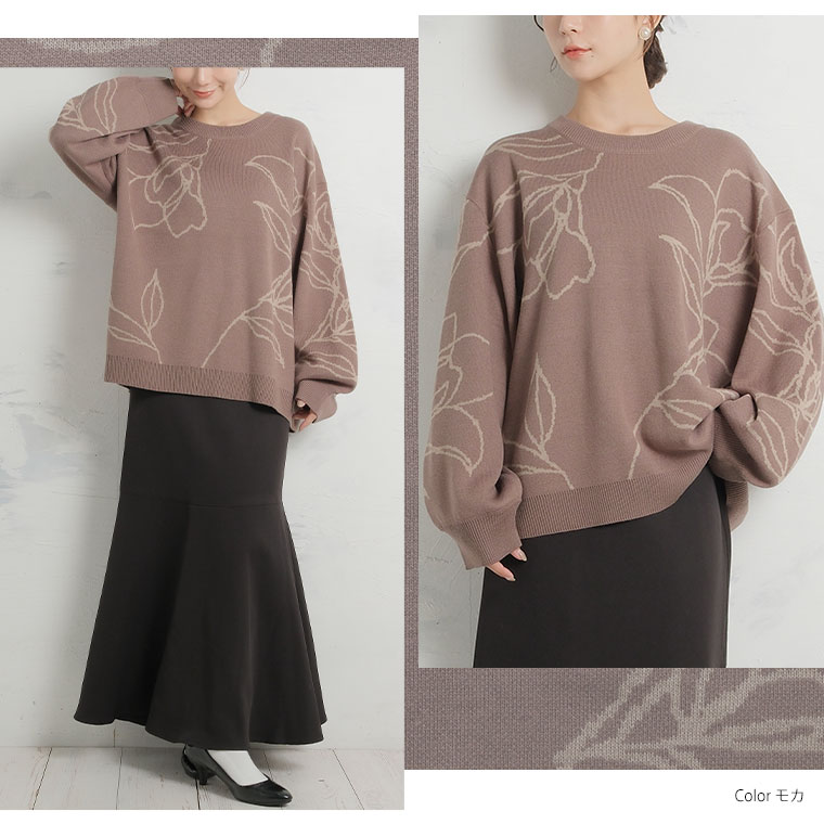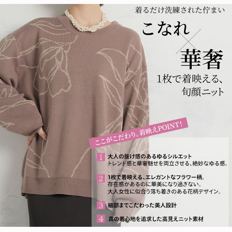 【Rin】大人が着やすい、こなれフラワー柄ニット