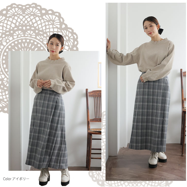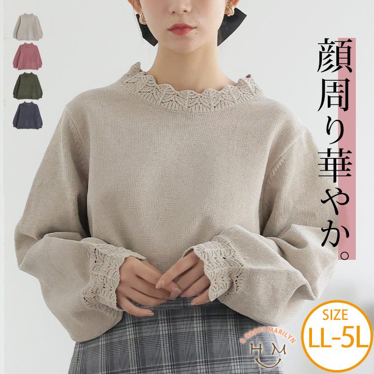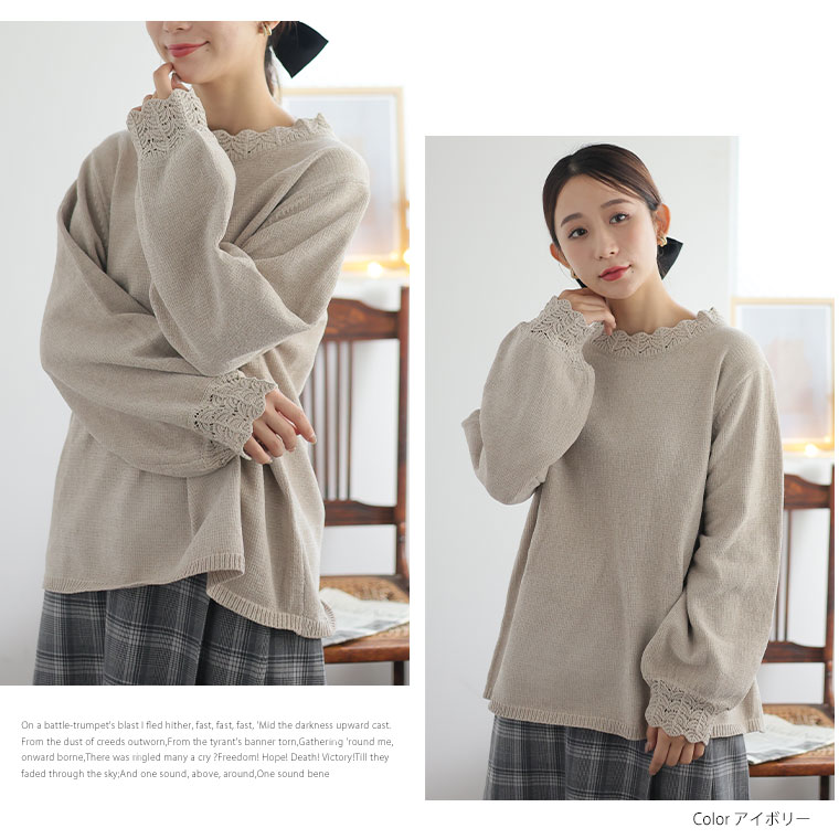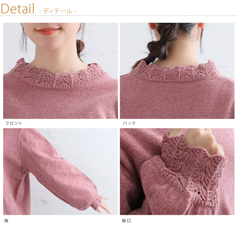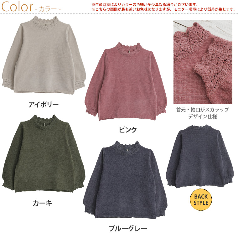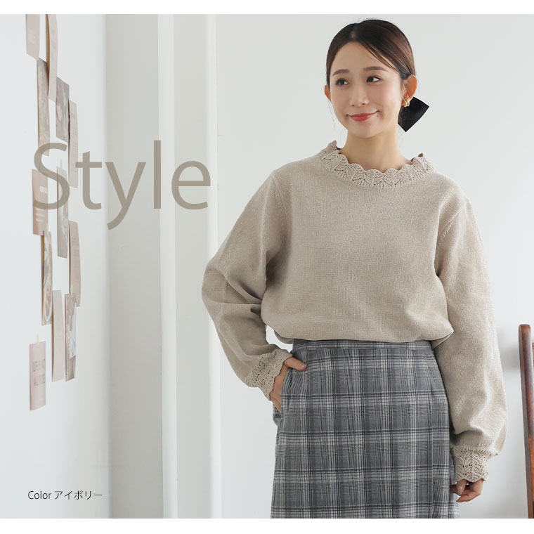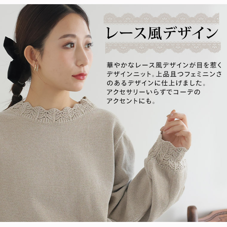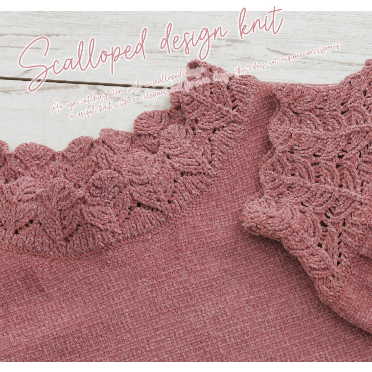 華やかなレース風デザインが目を惹く スカラップニットプルオーバー