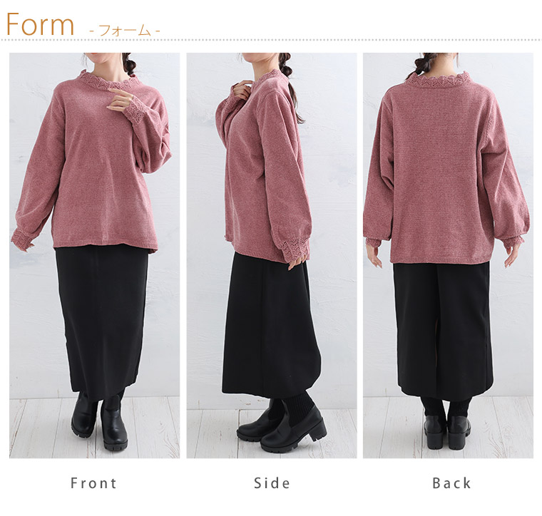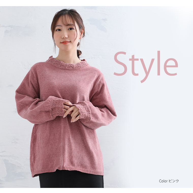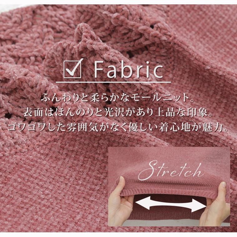 ふんわり柔らかなモールニットでゴワゴワしない、優しい着心地。