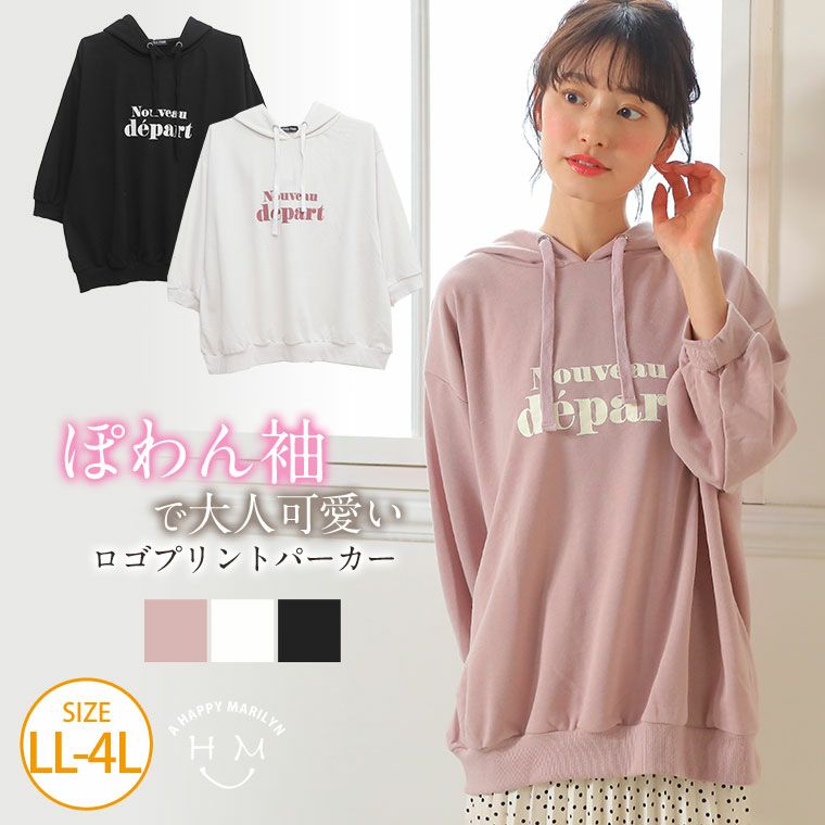 パーカー パーカ トップス LL 3L 4L 春 春物 春服 夏 夏物 夏服 ぽっちゃり かわいい おしゃれ カジュアル ナチュラル ミニ裏毛 7分袖 ビッグシルエット プリントパーカー | 大きいサイズの通販ならハッピーマリリン