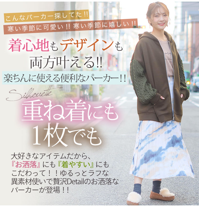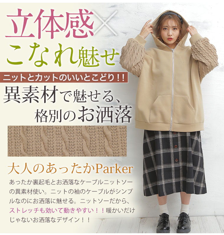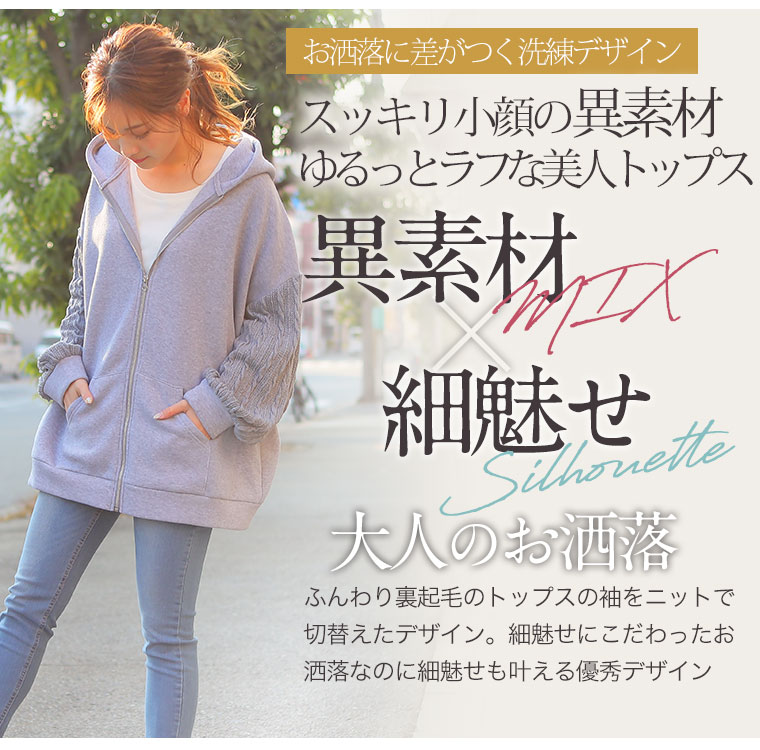 ゆるっとラフ!スッキリ魅せる異素材切替パーカー