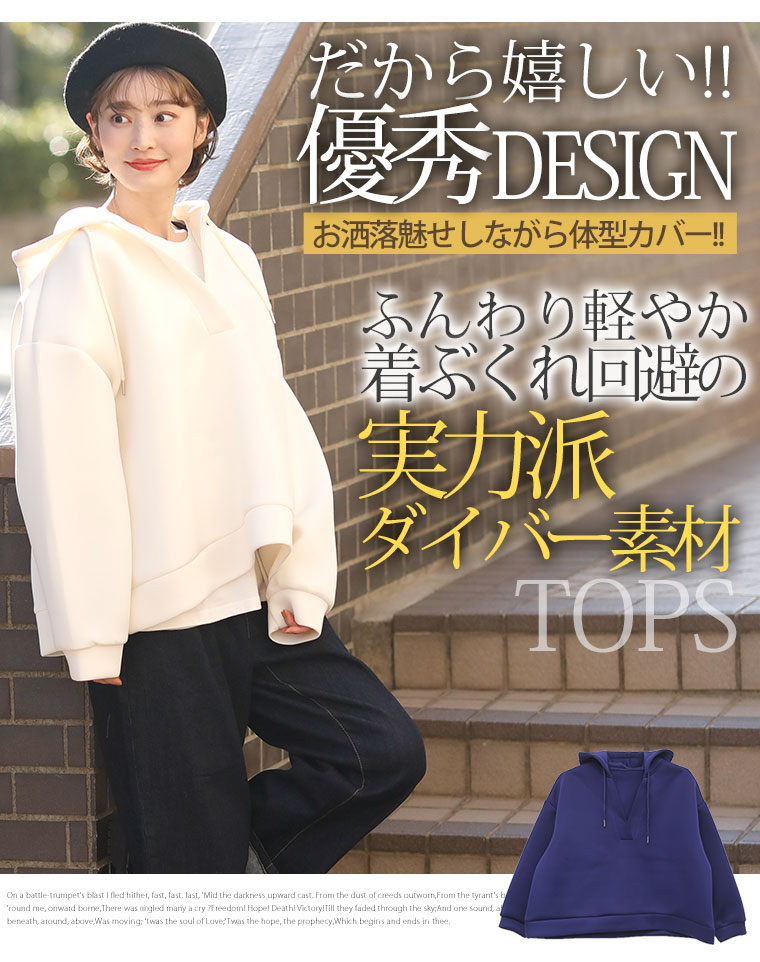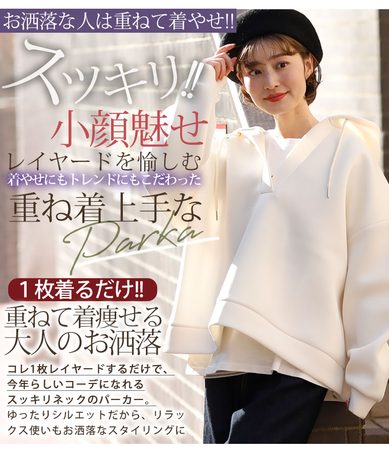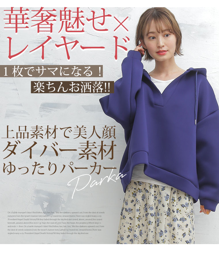 ゆるっとラフ 美人にレイヤードが叶う ダイバー素材パーカー