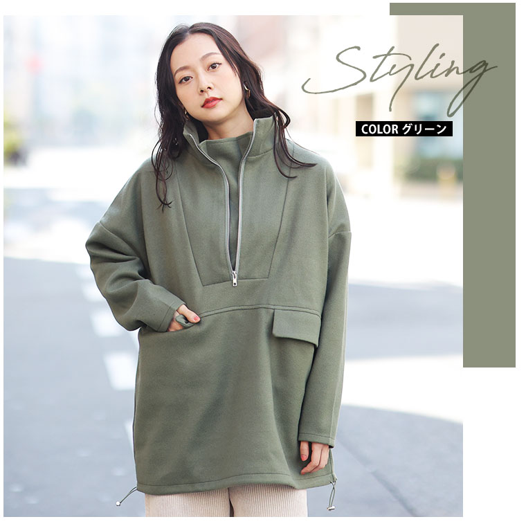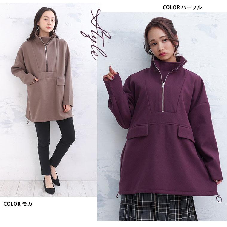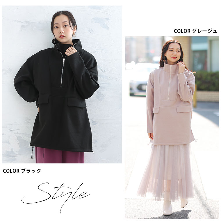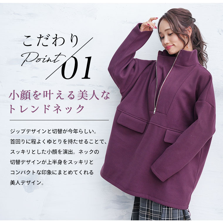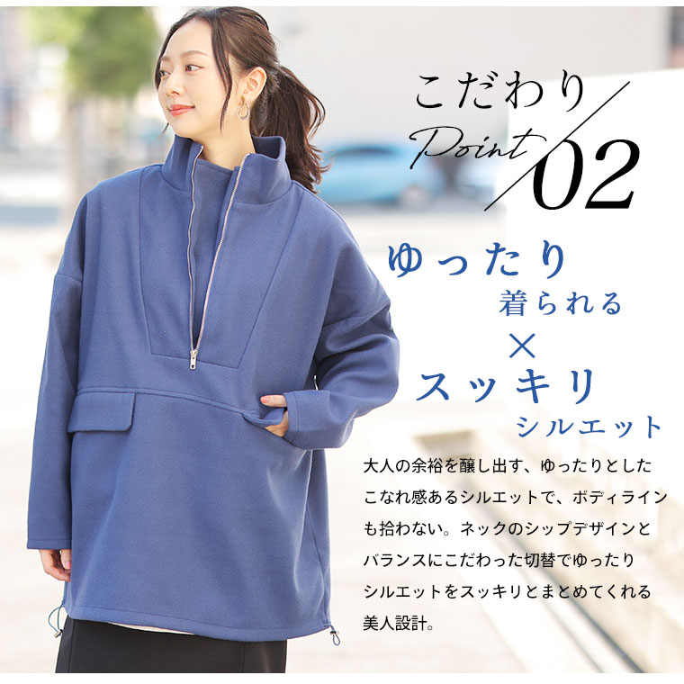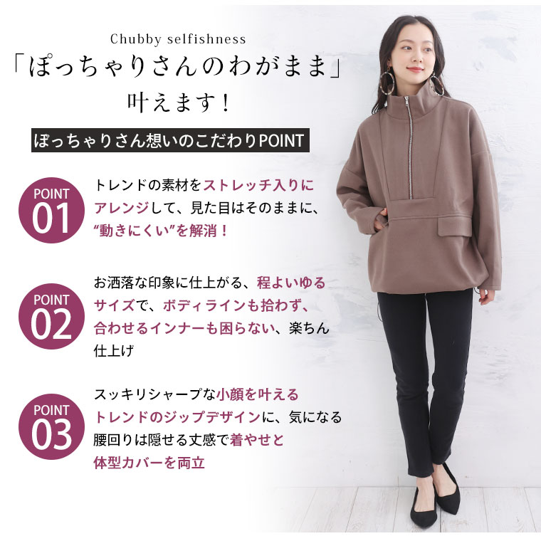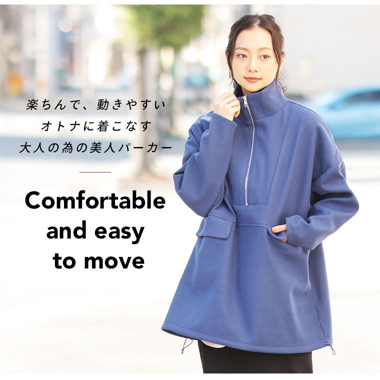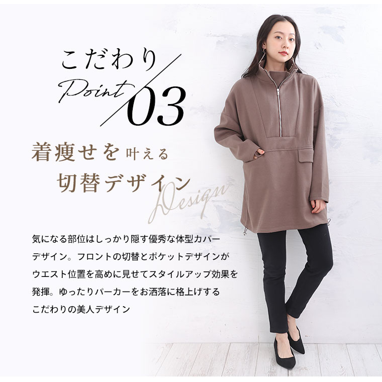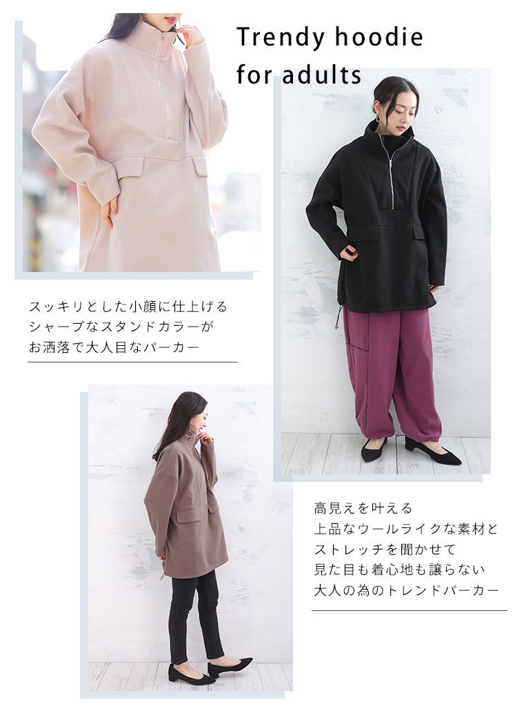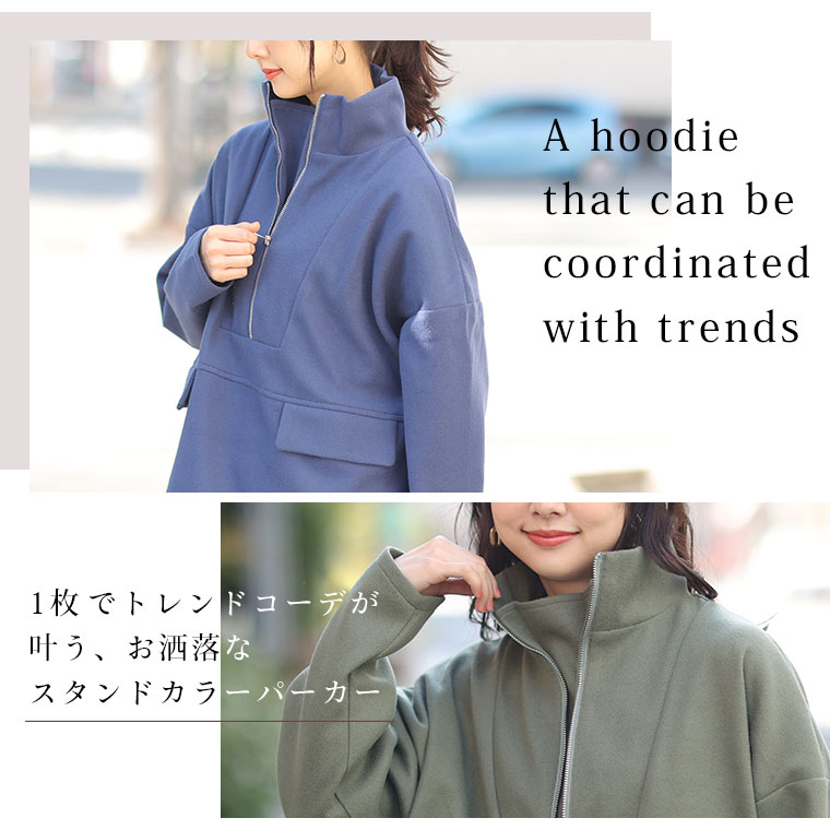 ストレッチ生地で楽ちんに着れるジップデザインパーカー