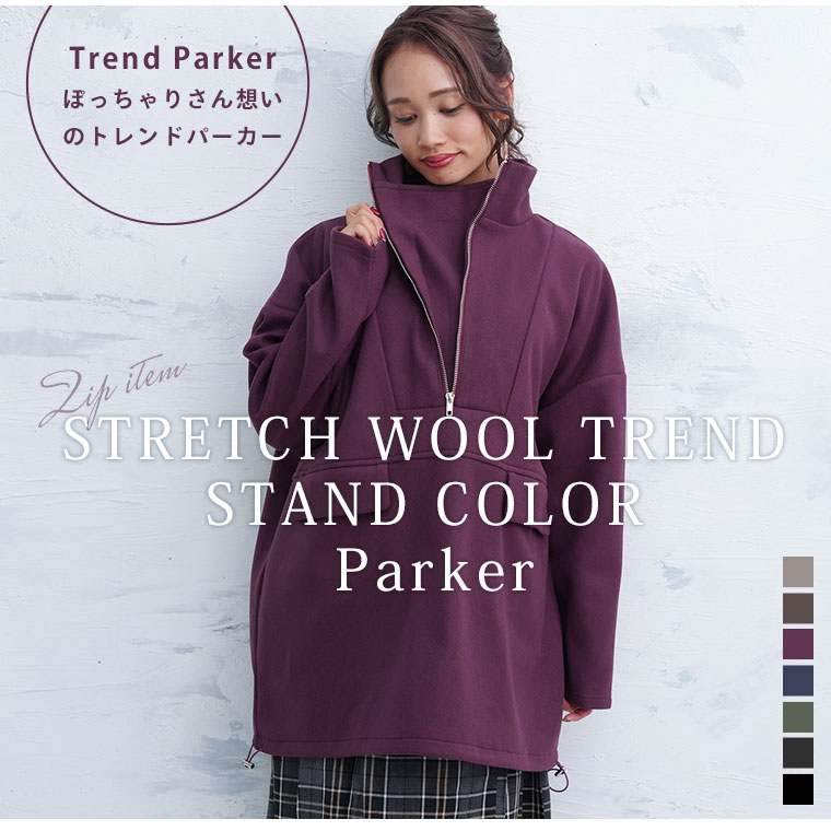 3. 大きいサイズ 楽伸びストレッチ 楽して美人な スタンドカラー フェイクウール アノラックパーカー