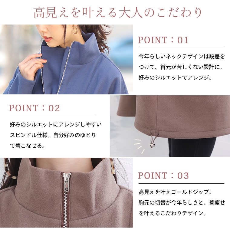 私は首がそんなに長くないので、えりが顎にくっついてしまう時があるのが気になってしまいます。 折るのも変だし、どう着ていいのか悩んでいます。 生地は厚めで暖かそうです。