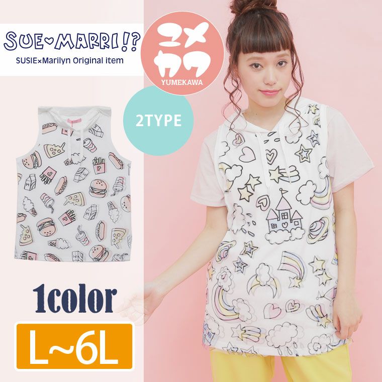 チュール重ねデザインでポップな着こなし。2柄から選べるノースリーブパーカー