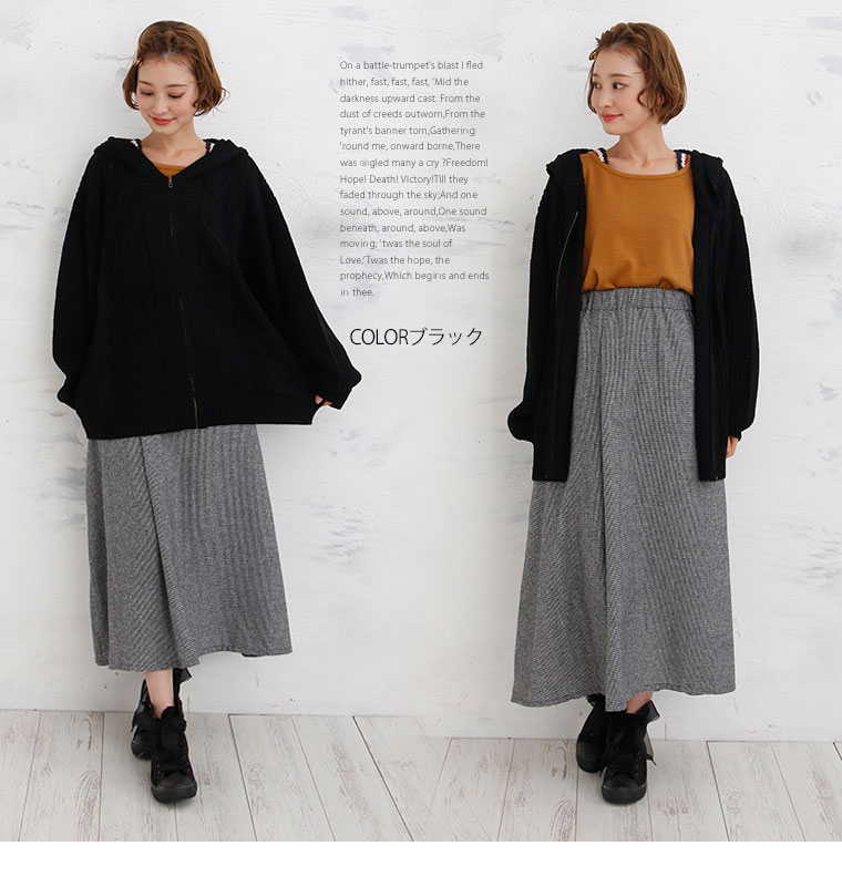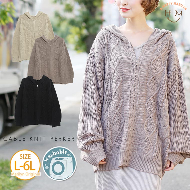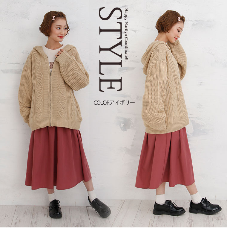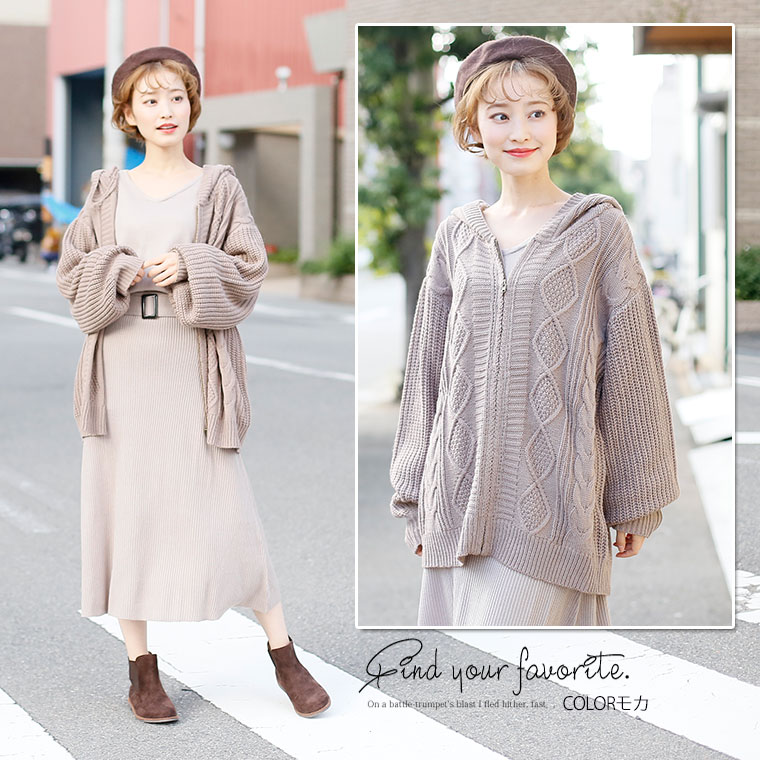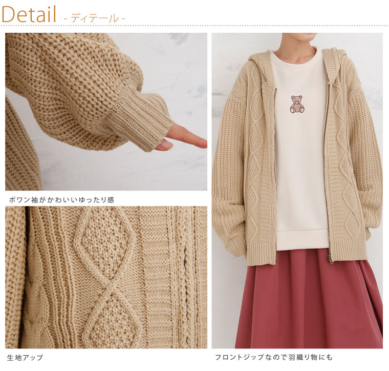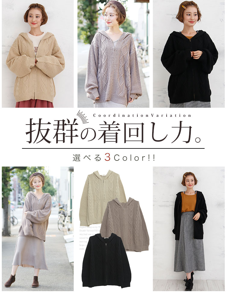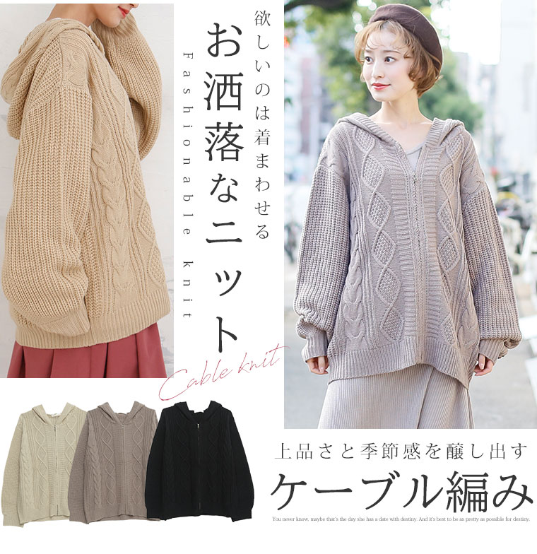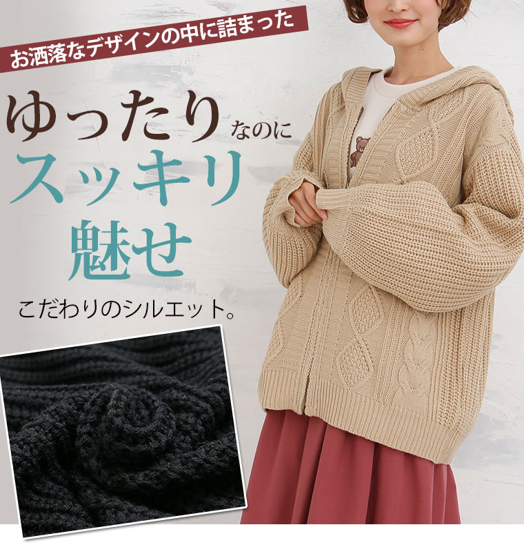 上品さと季節感を醸し出すケーブル編みが可愛いシンプルニット