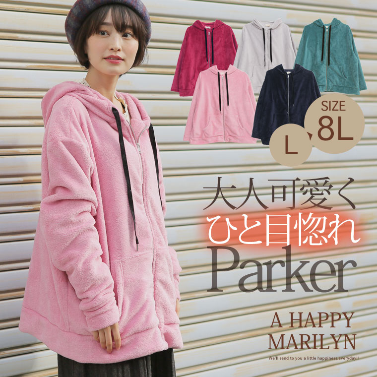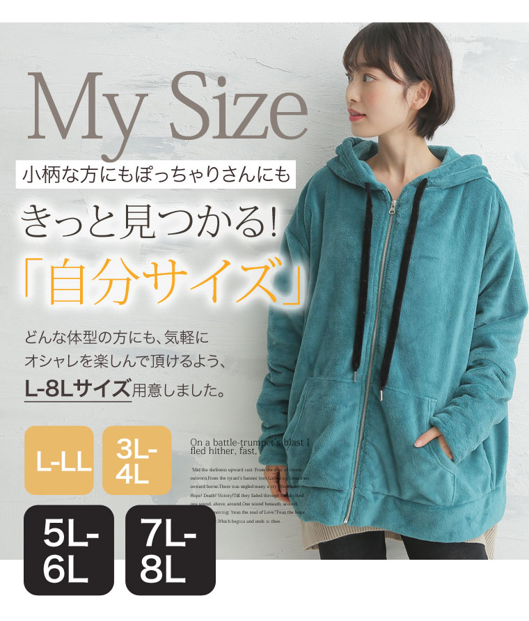 オリジナル アウター パーカー パーカ LL 3L 4L 5L 6L 7L 8L 冬 冬物 冬服 ぽっちゃり ゆったり 可愛い お洒落 お腹 胸周り 二の腕カバー マイクロフリース フルジップ 長袖 パーカー