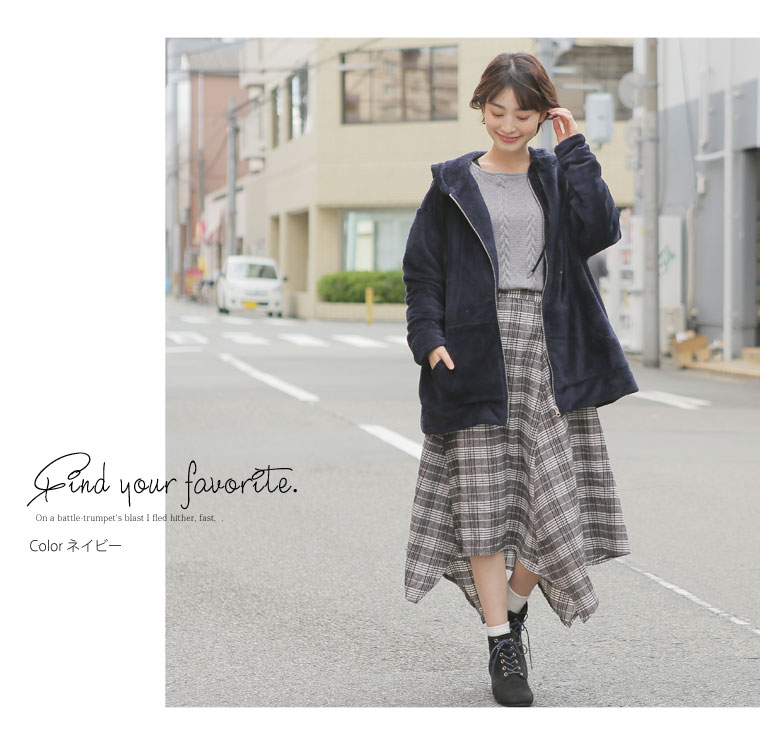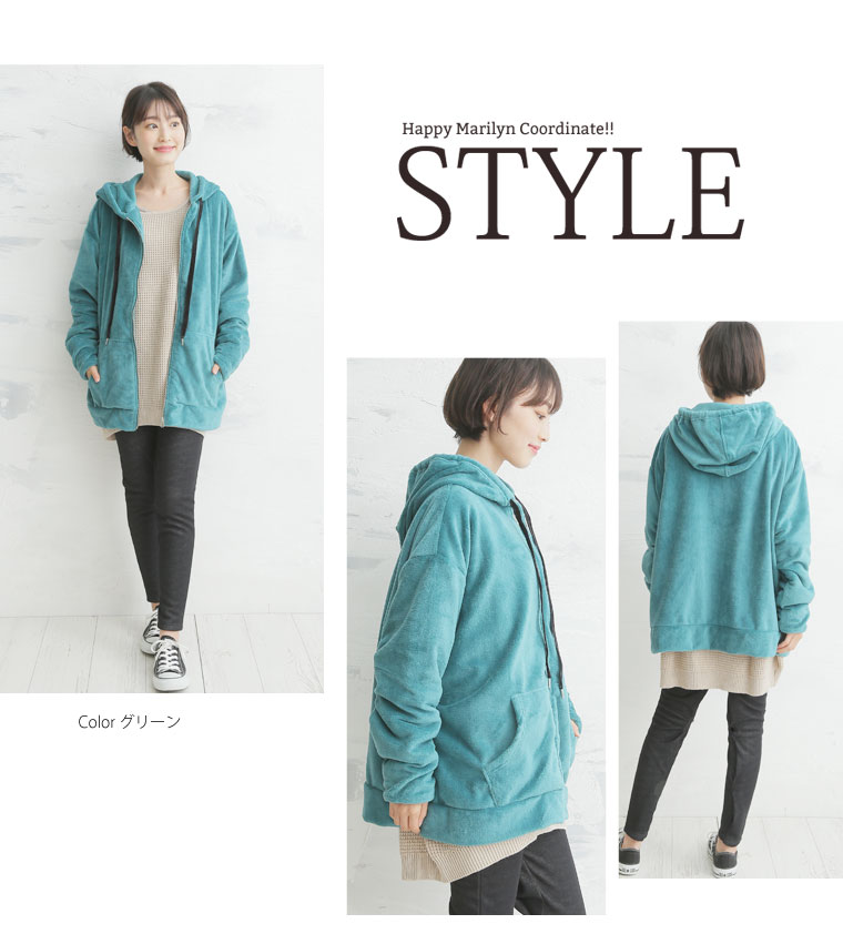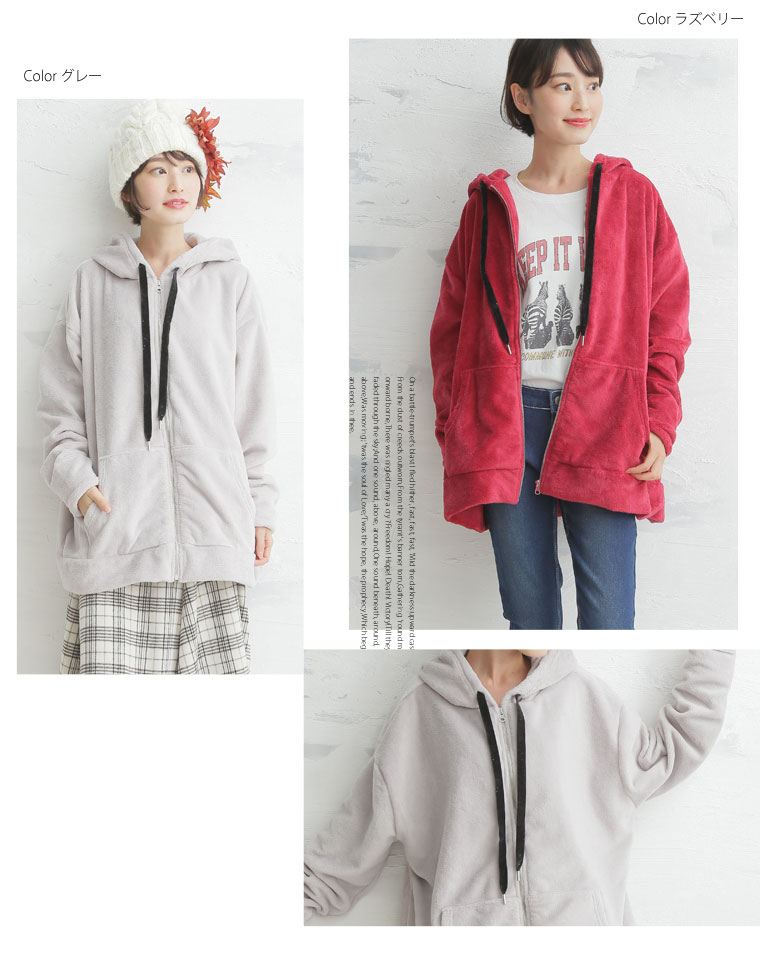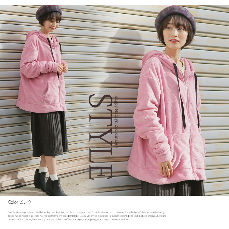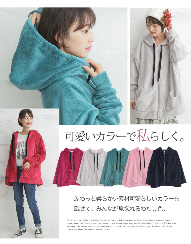 もこもこ生地のマイクロフリースで季節感たっぷり♪フーディージャケット