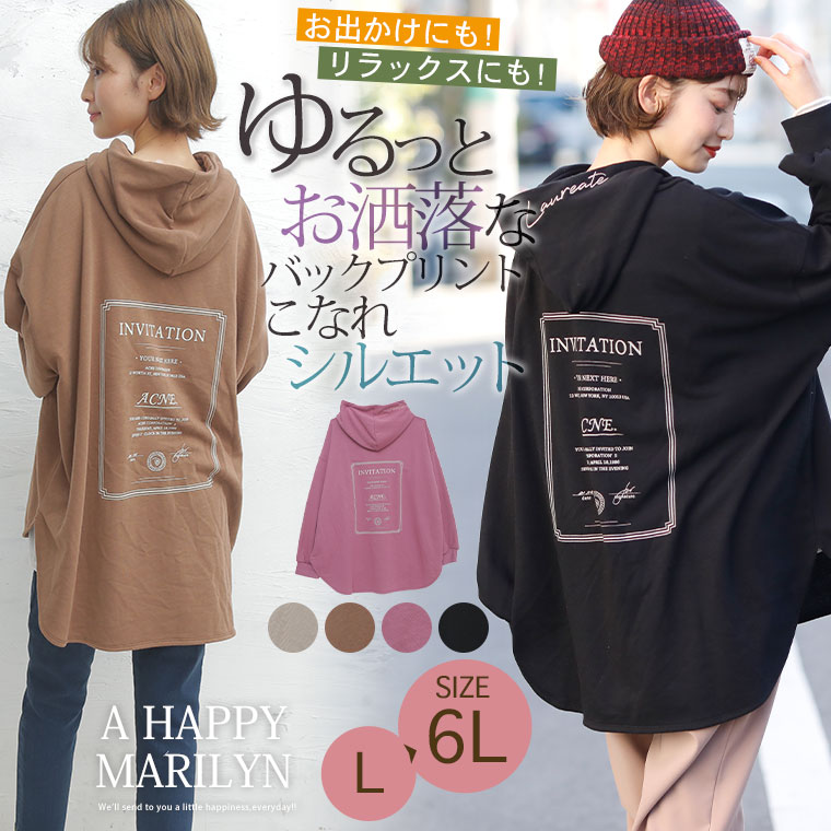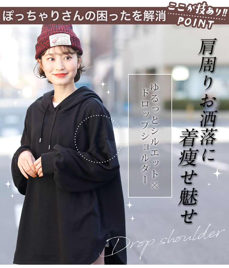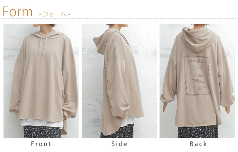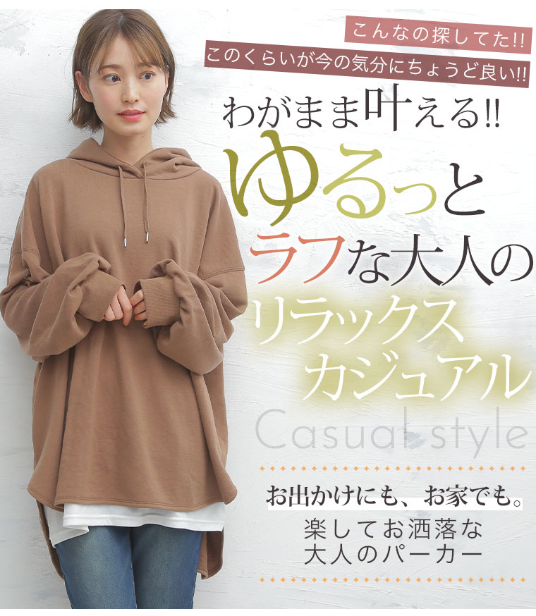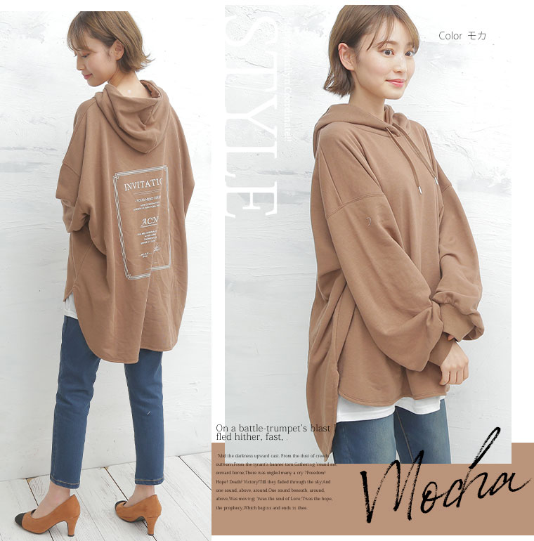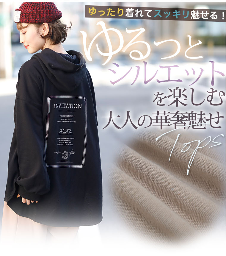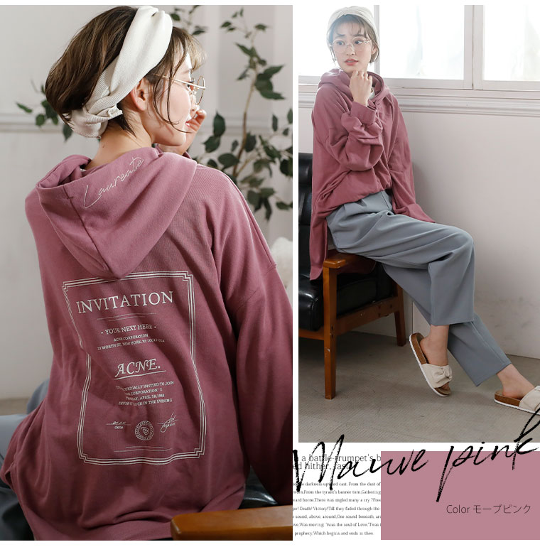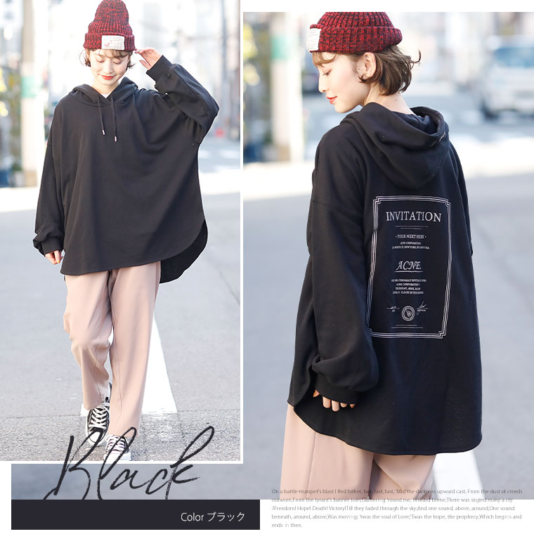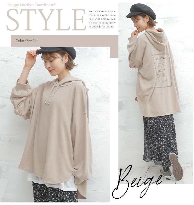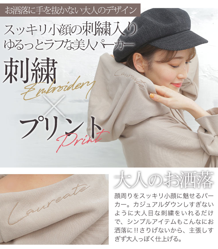 パーカーの刺繍とバックプリントがお洒落!こなれシルエットで華奢魅せ美人