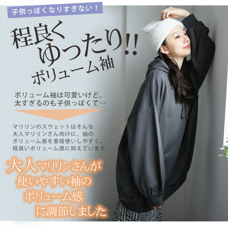こだわり設計のゆるシルエットで快適可愛いスウェットパーカー
