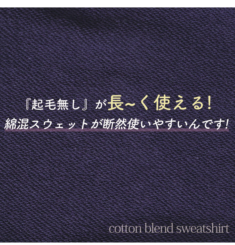 丁寧に編み上げた柔らかな風合いの スウェット生地です。綿混用の素材なので 通気性が良いのもPOINTです。 暑がりさんにもおススメの素材です。