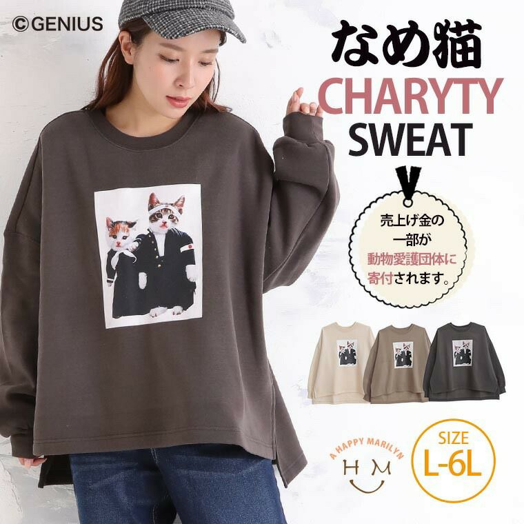 あったか裏起毛のふんわりスウェットになめ猫プリントをON!バックも可愛い肉球プリント。