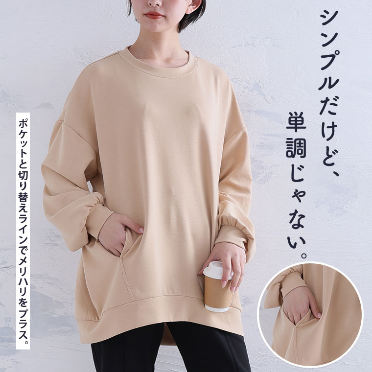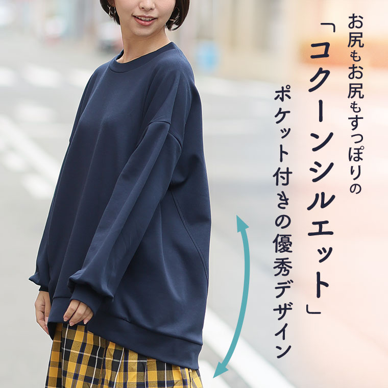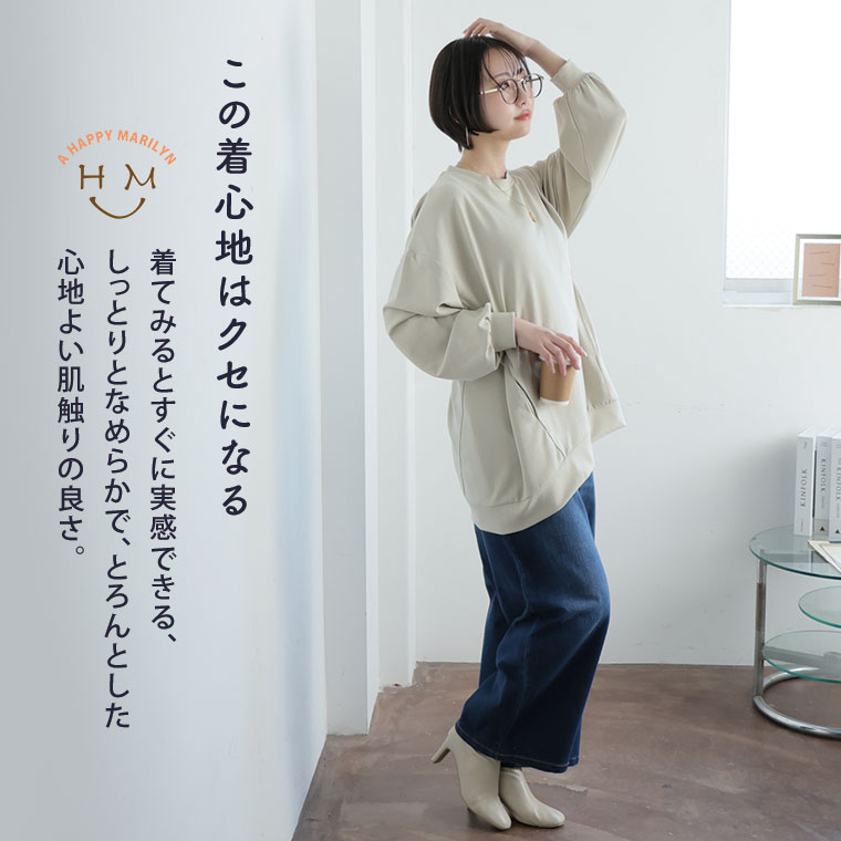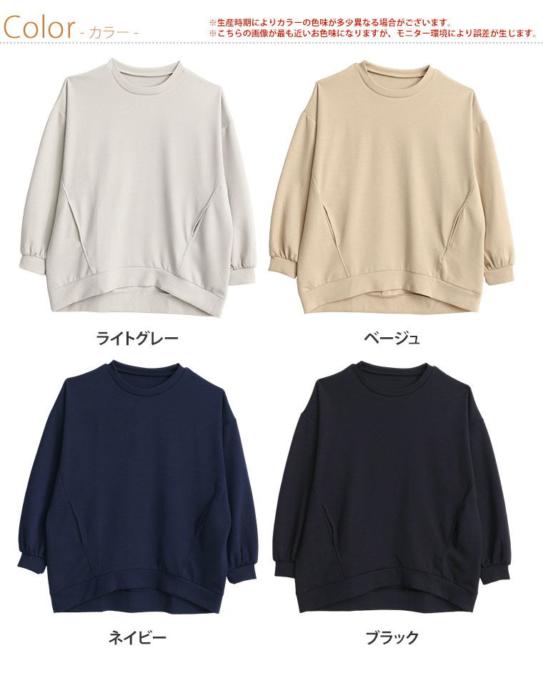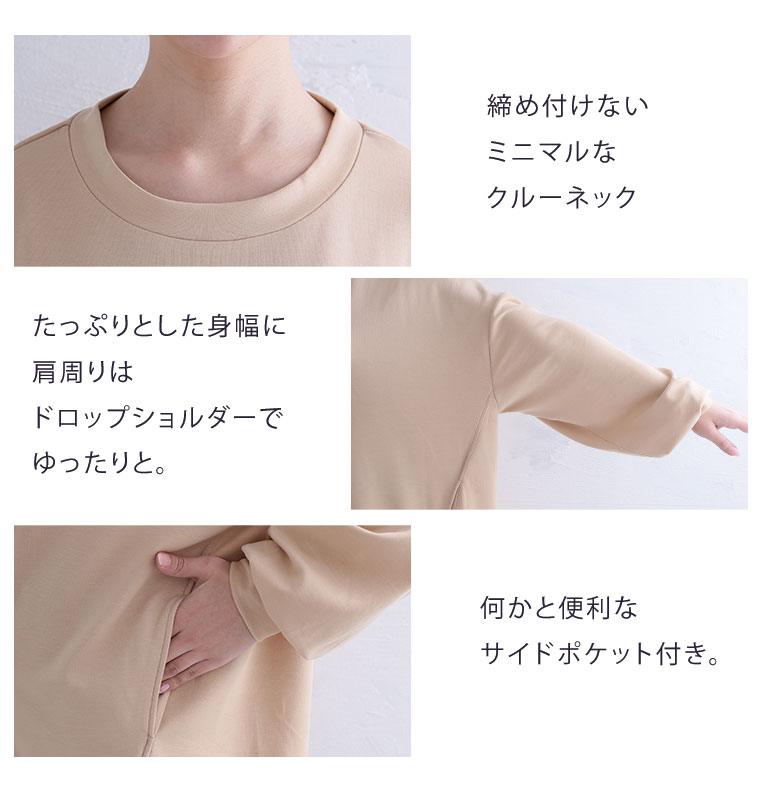 さりげなくお腹周りを隠すトレーナーデザインゆるっと着られるのが良い