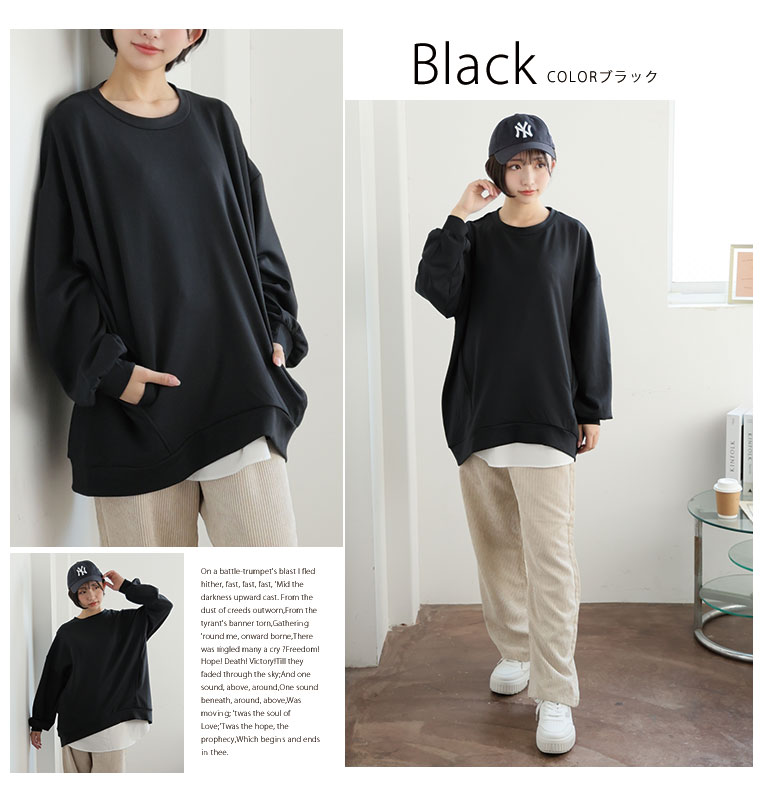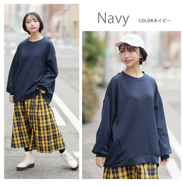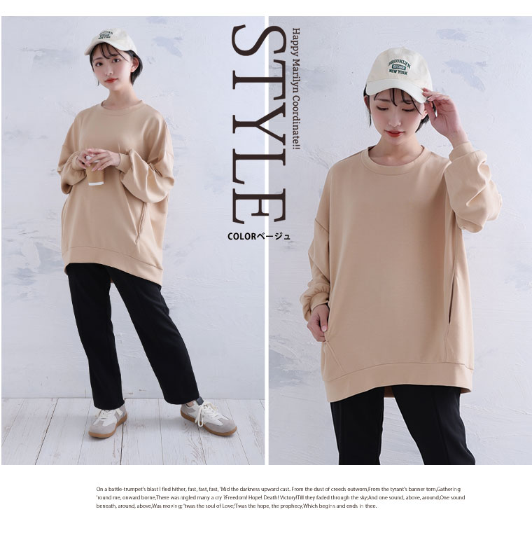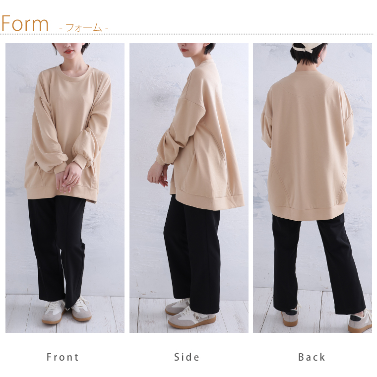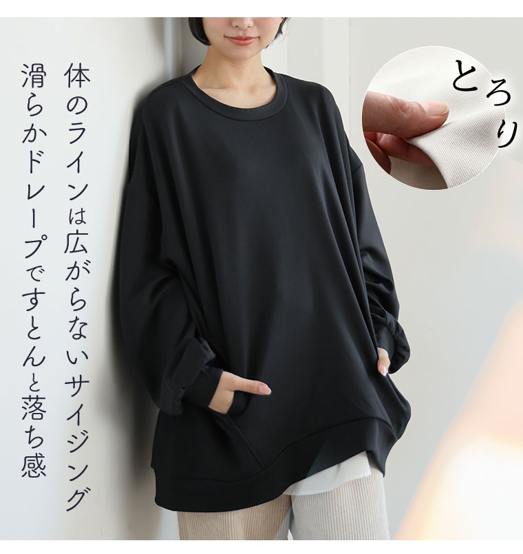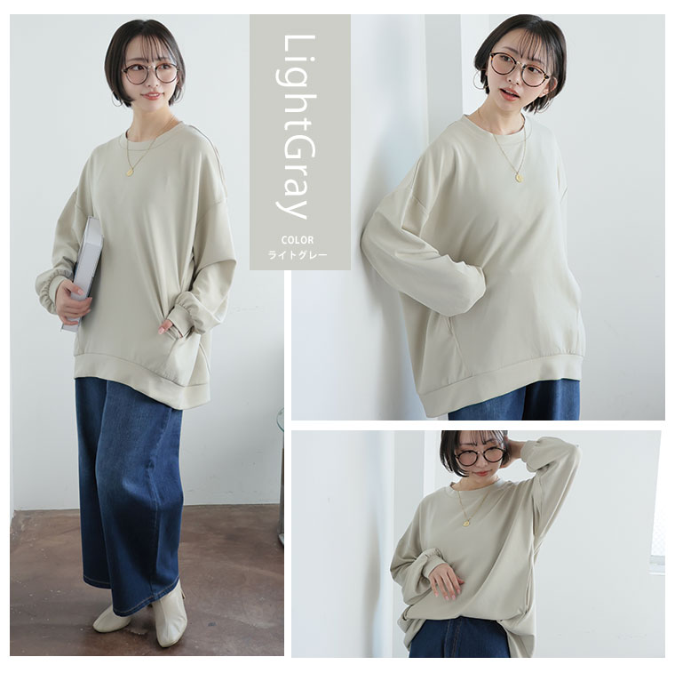 さりげなくお腹周りを隠すトレーナーデザインゆるっと着られるのが良い