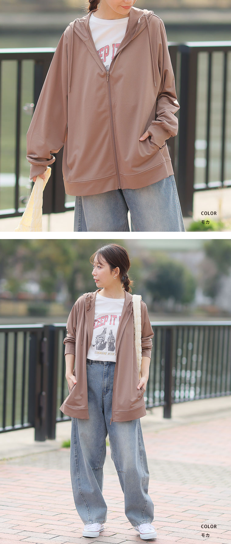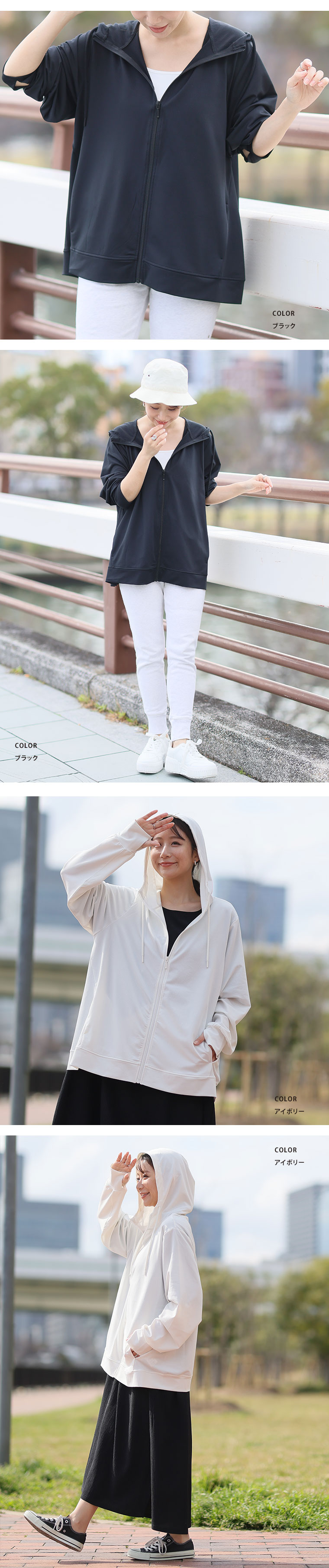風は通す 紫外線は防ぐ 快適続くUVパーカーで 長い時間着ていられる
