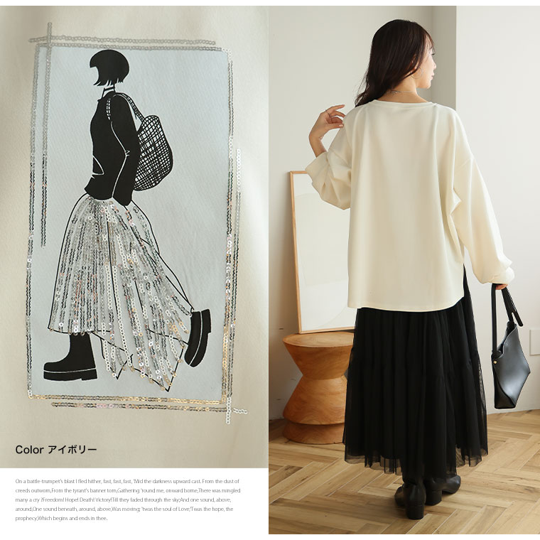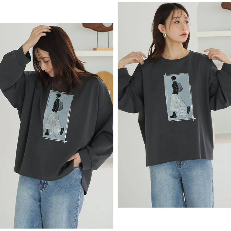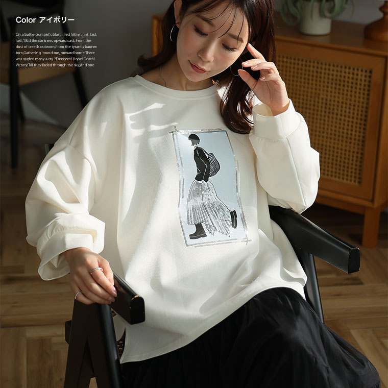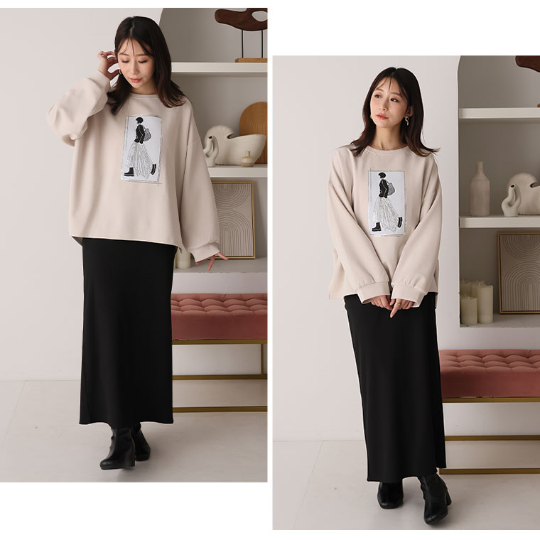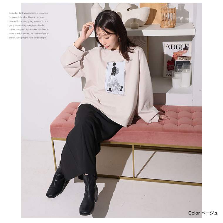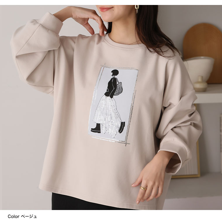 スパンコール×ガールロゴでトレンドおしゃれスウェット