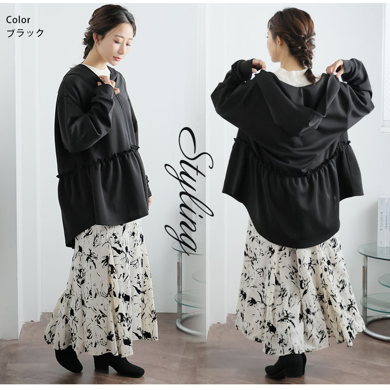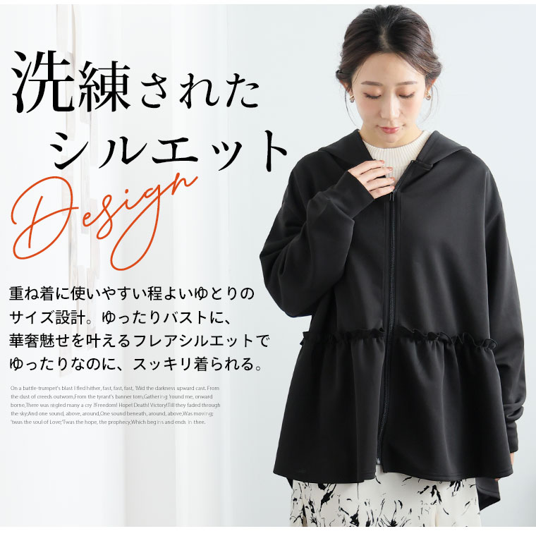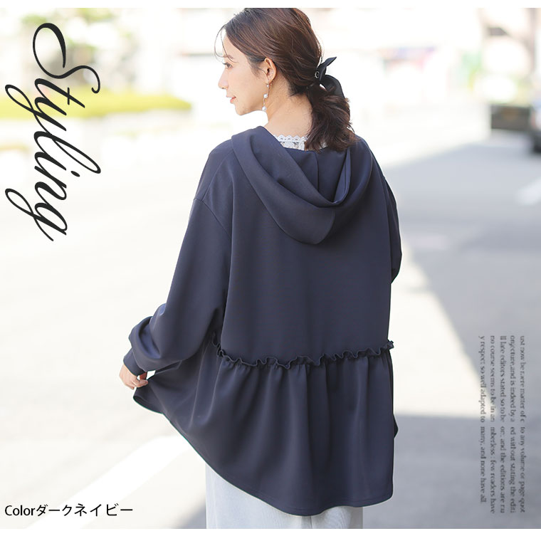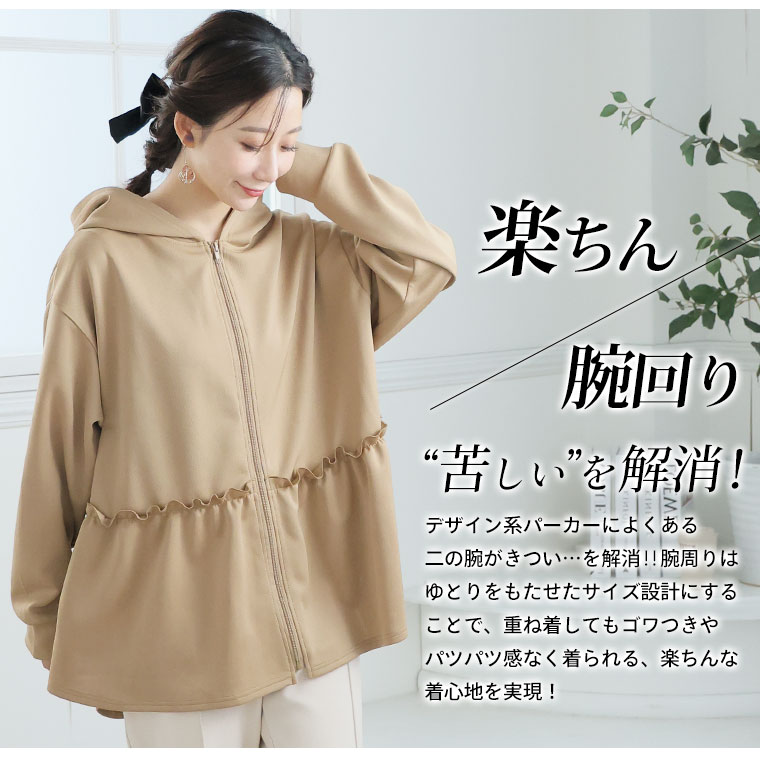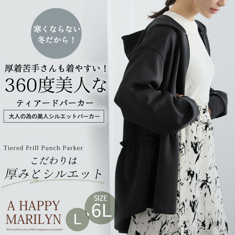 オリジナル トップス アウター LL 3L 4L 5L 6L 長袖 冬 冬物 冬服 ぽっちゃり ゆったり 寒くない冬だから! 暑がりさんもおススメ 360度美人な フリル ポンチ ティアードパーカー