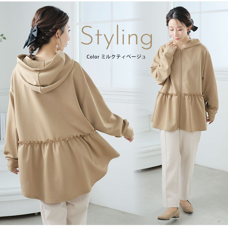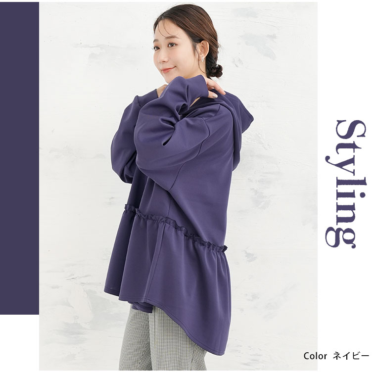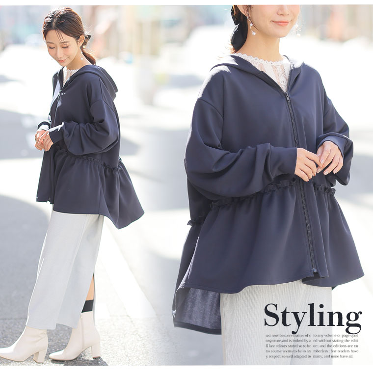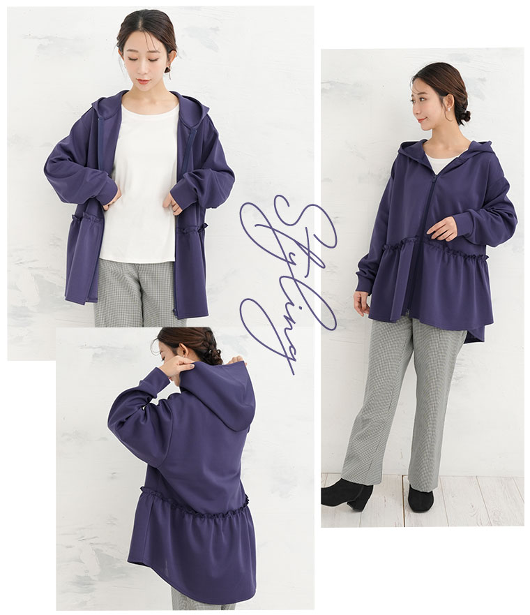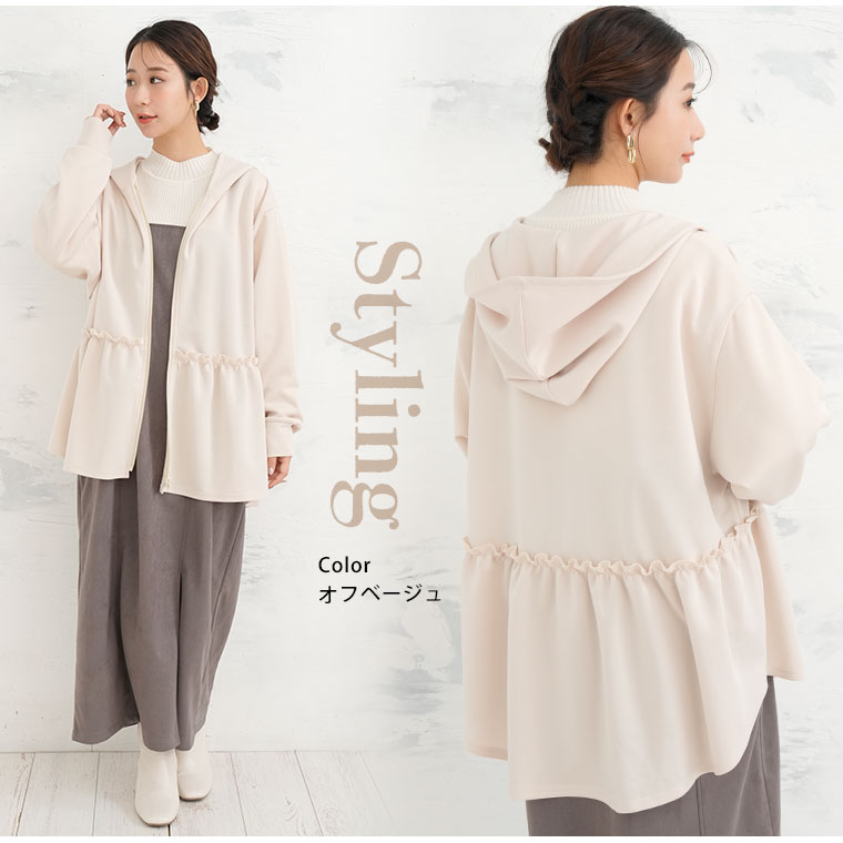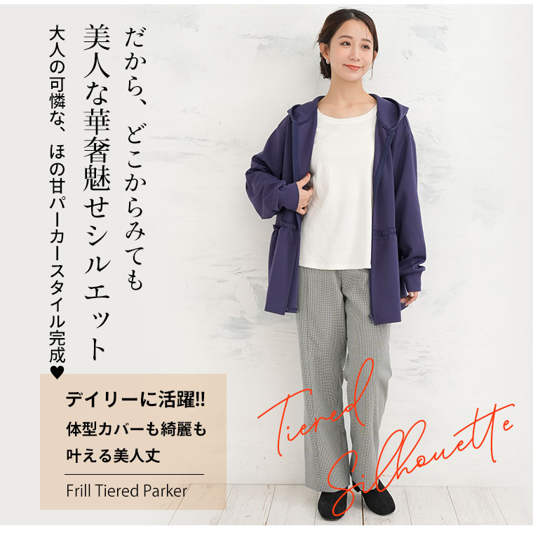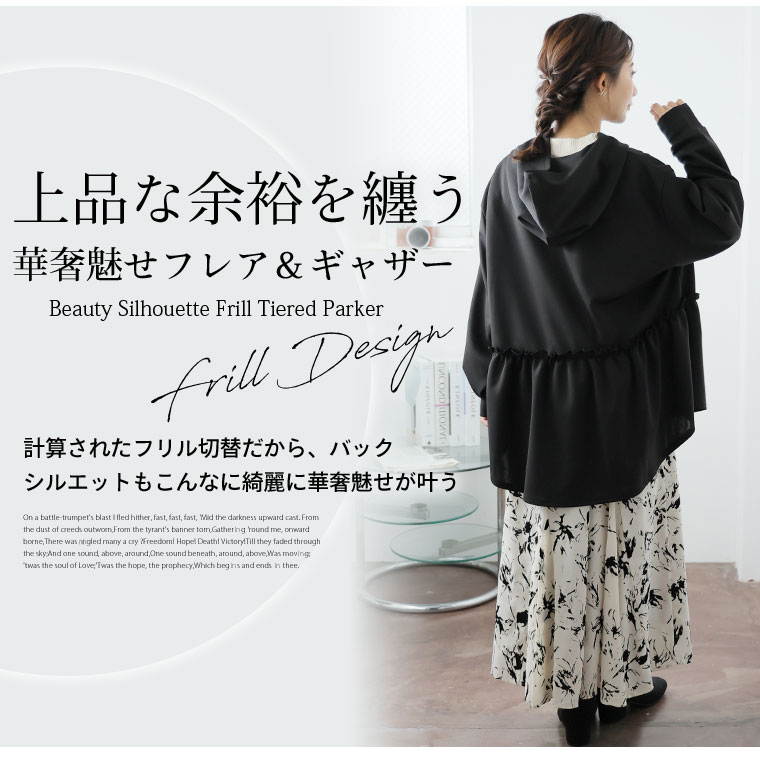 4. 大きいサイズ 寒くない冬だから! 暑がりさんもおススメ 360度美人な フリル ポンチ ティアードパーカー