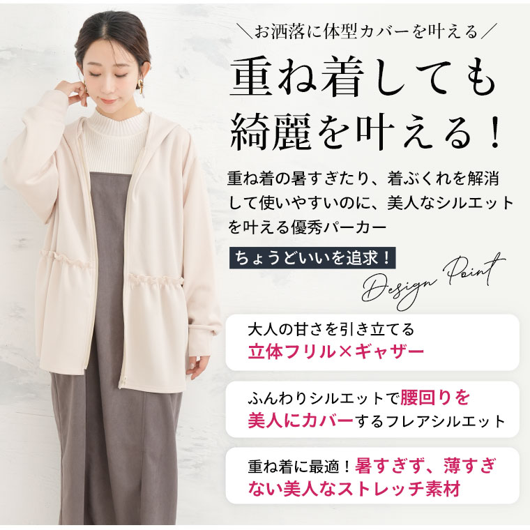 冬の重ね着に使いやすい! さらっと羽織って美人顔!360度美人なパーカー