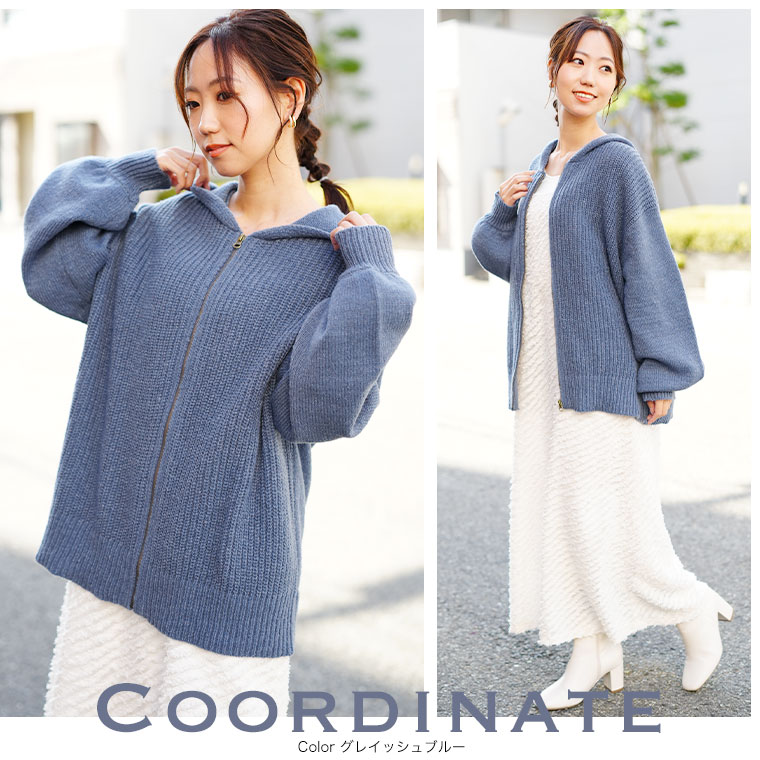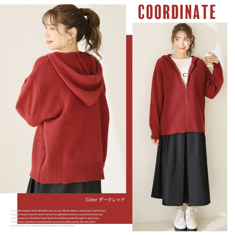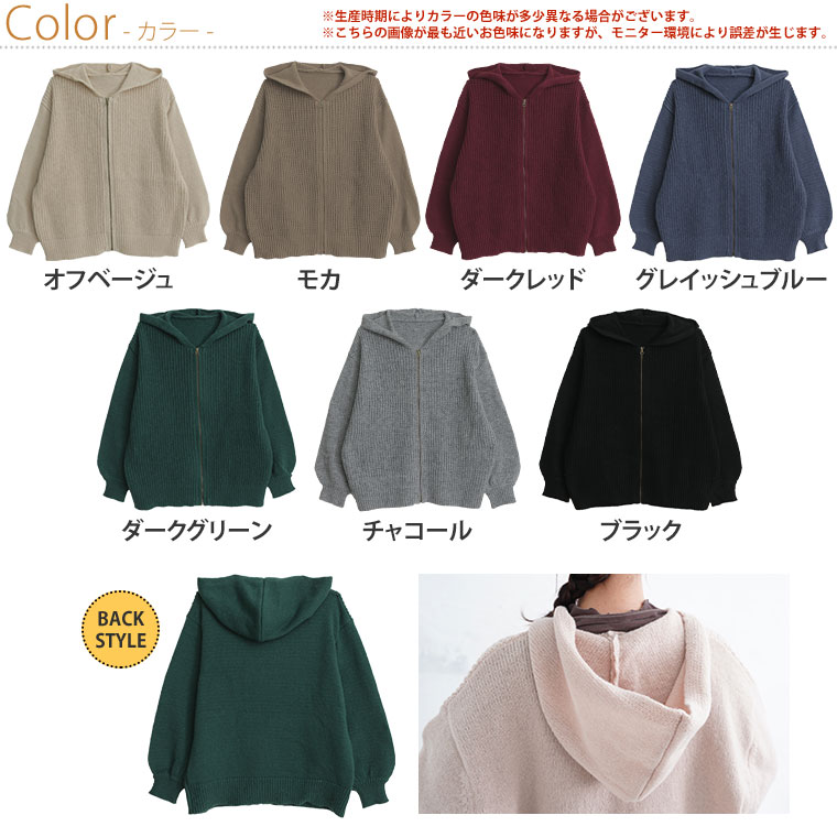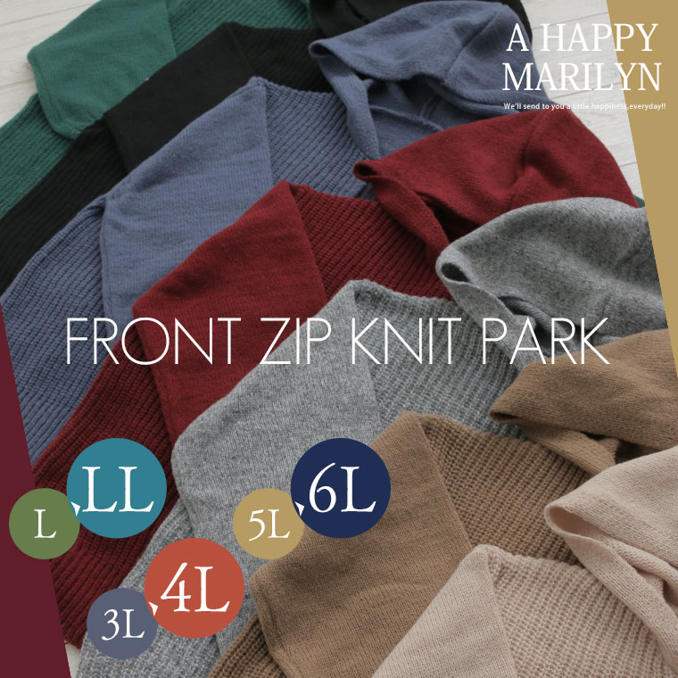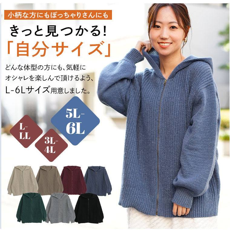 オリジナル セーター LL 3L 4L 5L 6L 冬 冬物 冬服 ぽっちゃり ゆったり プラスサイズ フード ニットパーカー fファスナー かわいい おしゃれ 編地切替え・ニット ジップパーカー