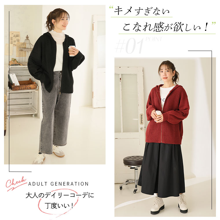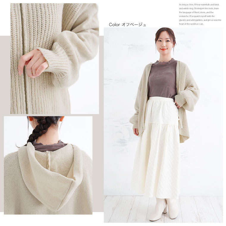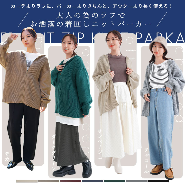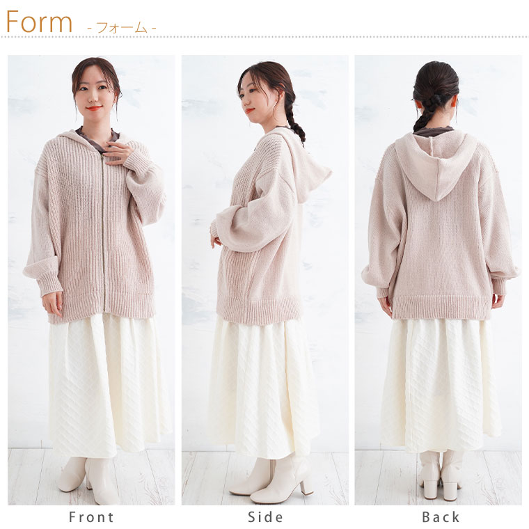 4. 大きいサイズ 編地切替え・ニット ジップパーカー