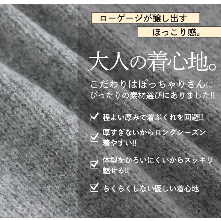 5. 大きいサイズ 編地切替え・ニット ジップパーカー