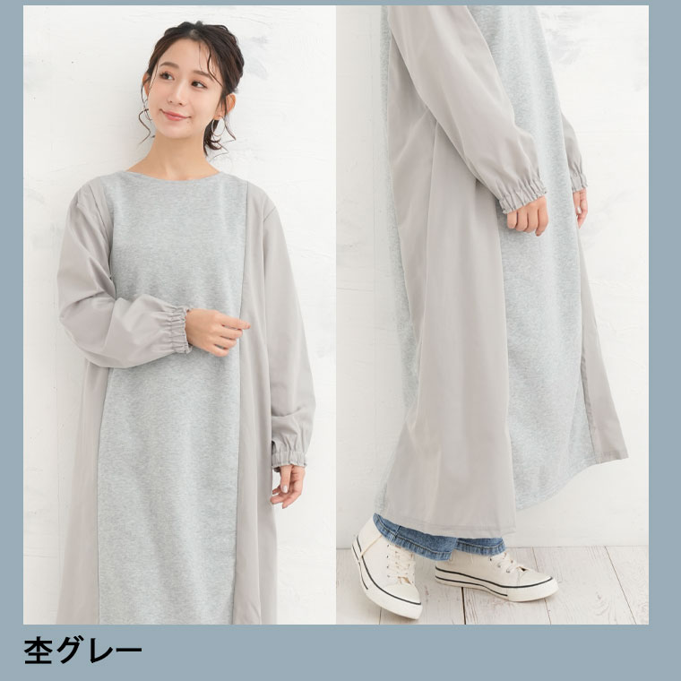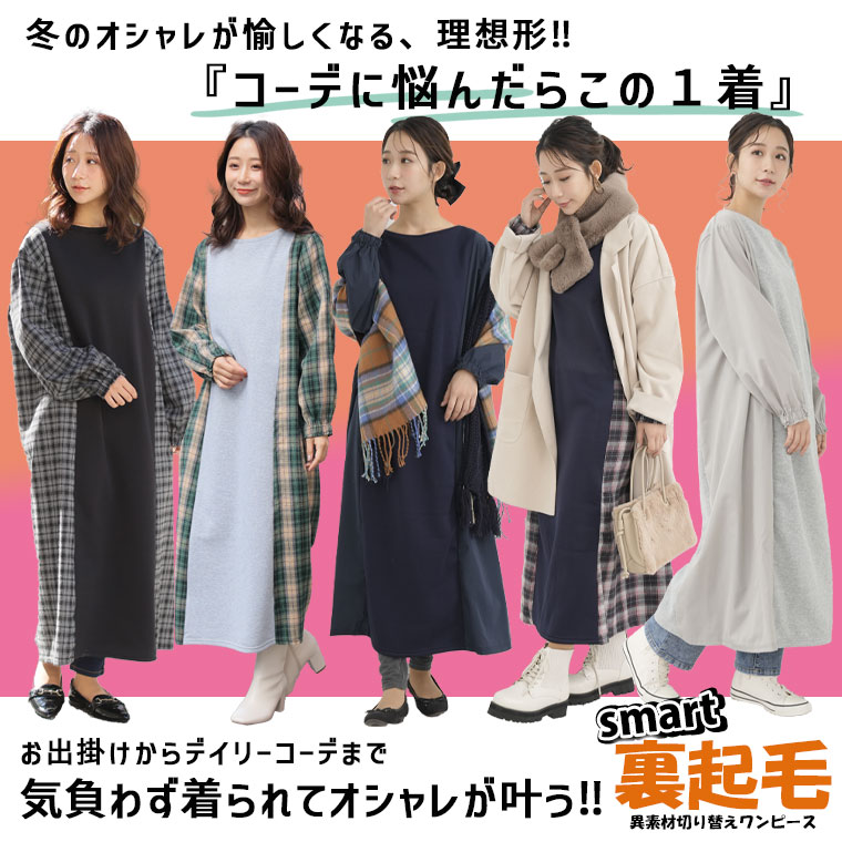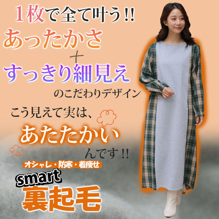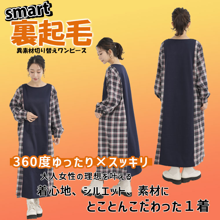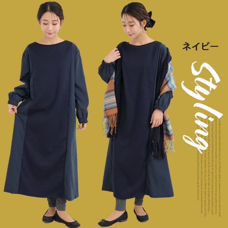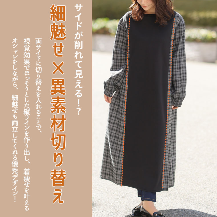 視覚効果でスッキリ魅せる!暖か裏起毛切替えワンピース