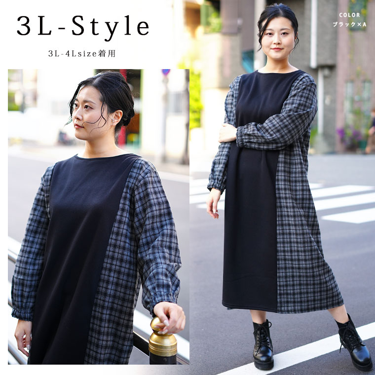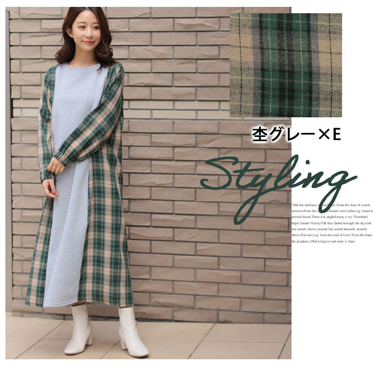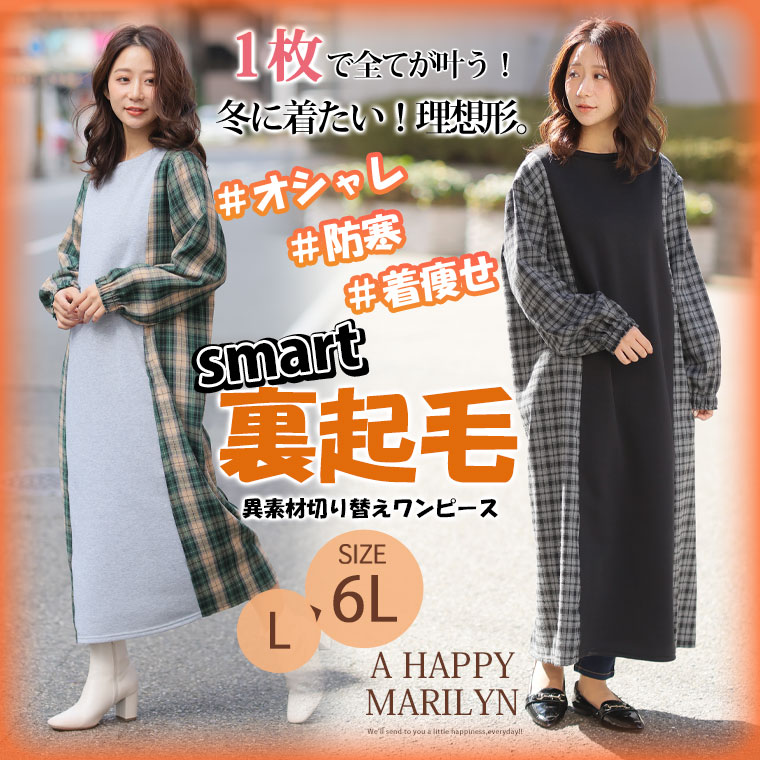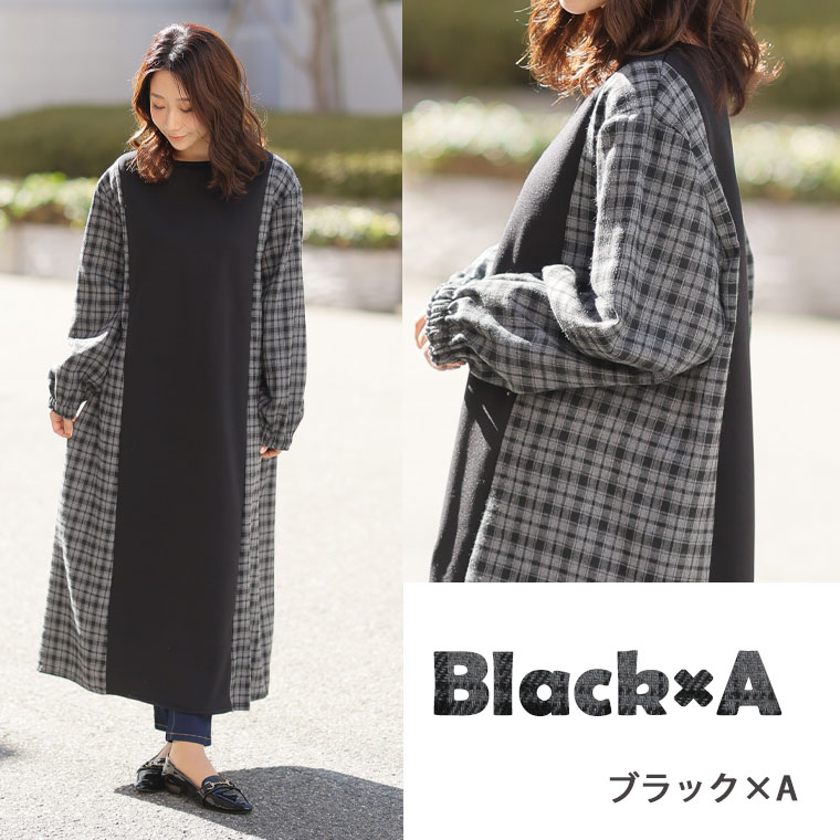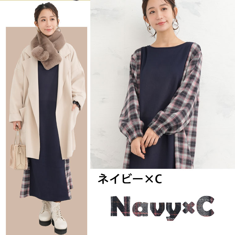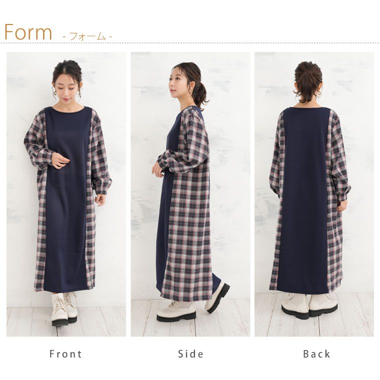 視覚効果でスッキリ魅せる!暖か裏起毛切替えワンピース