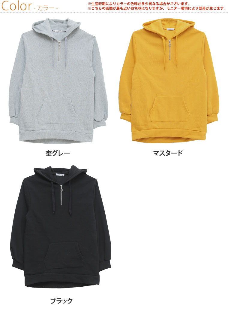 3. 大きいサイズ 裏起毛 リングハーフジップ 長袖 パーカー