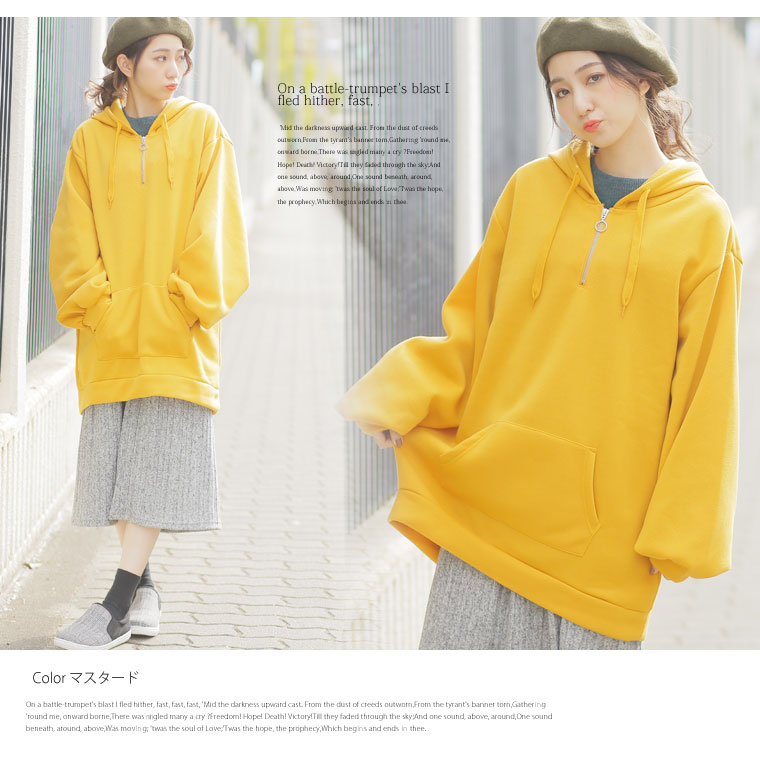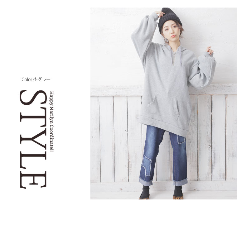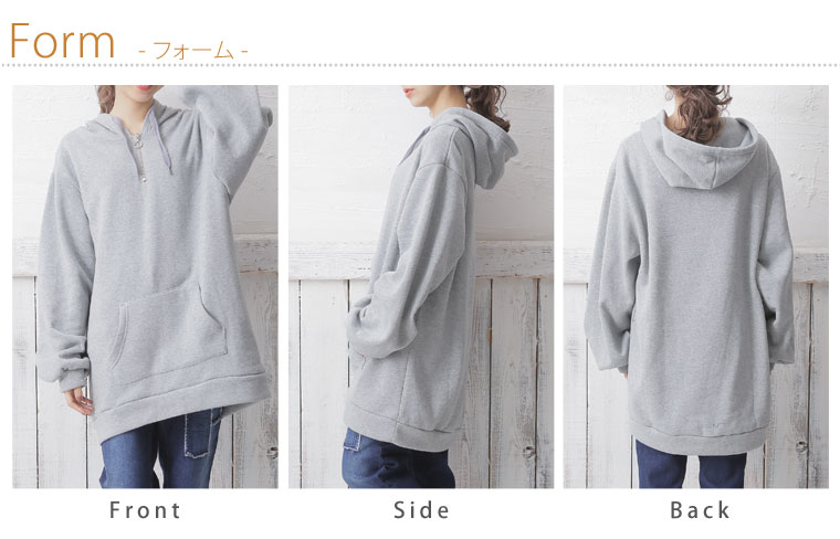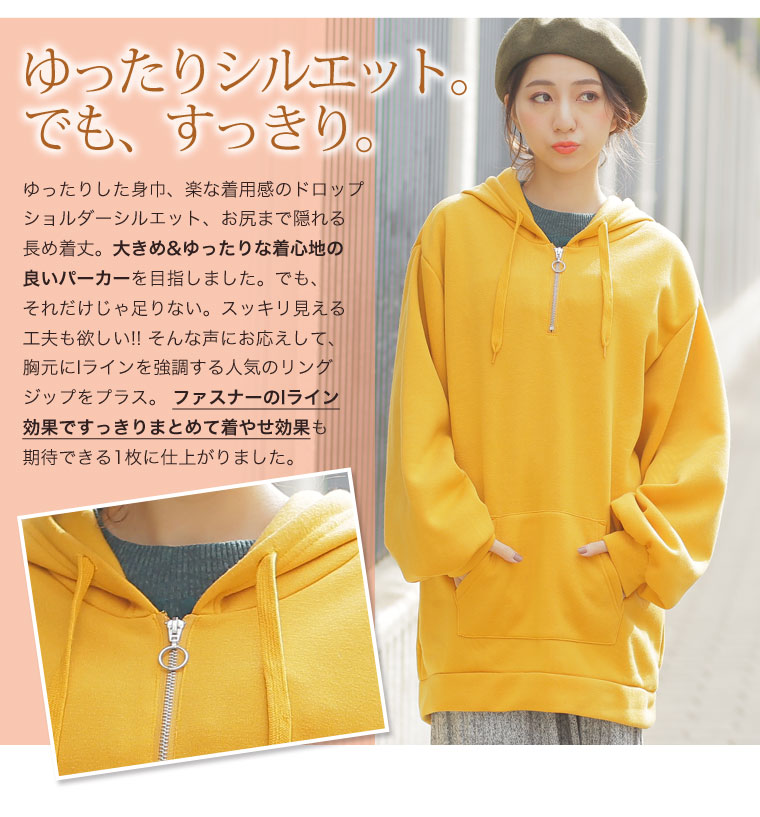 ゆるっと着こなすサイズ感♪裏起毛リングジップパーカー