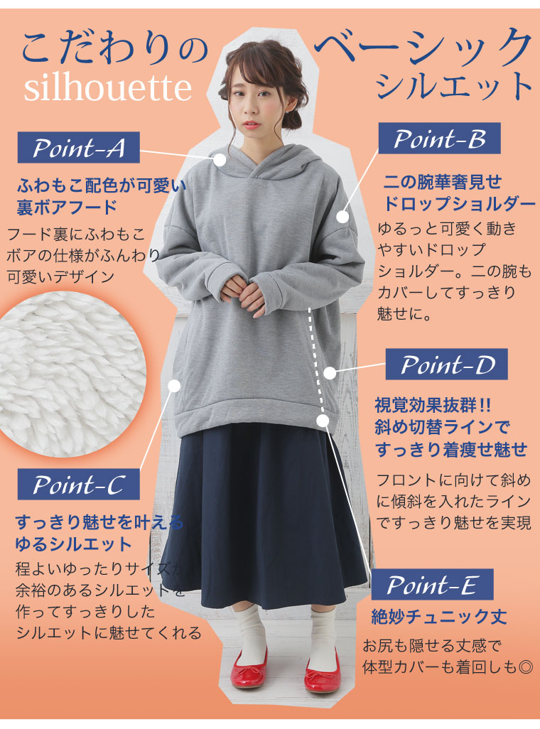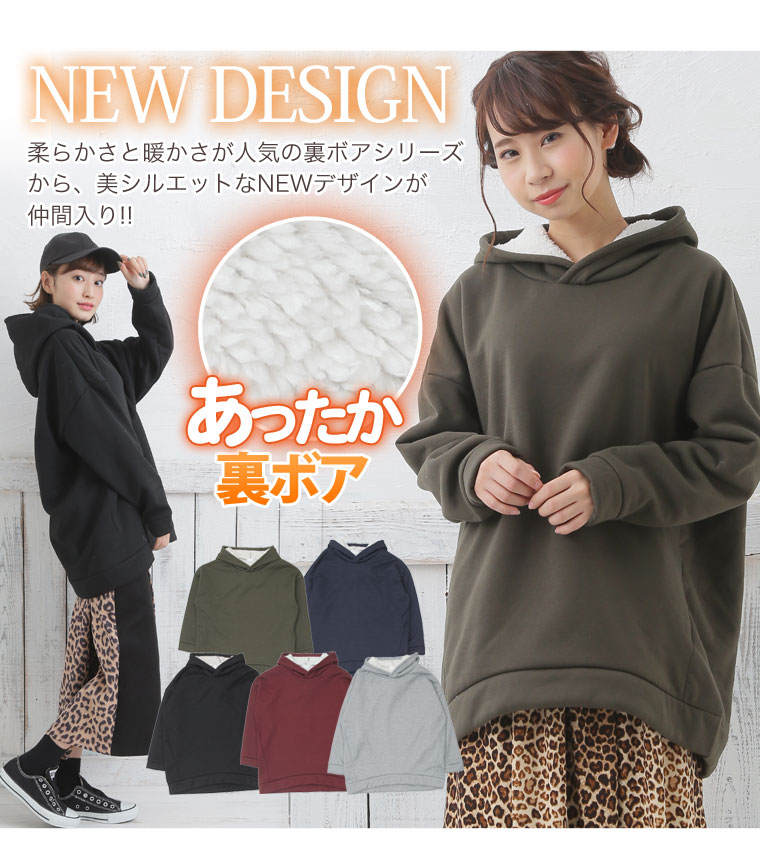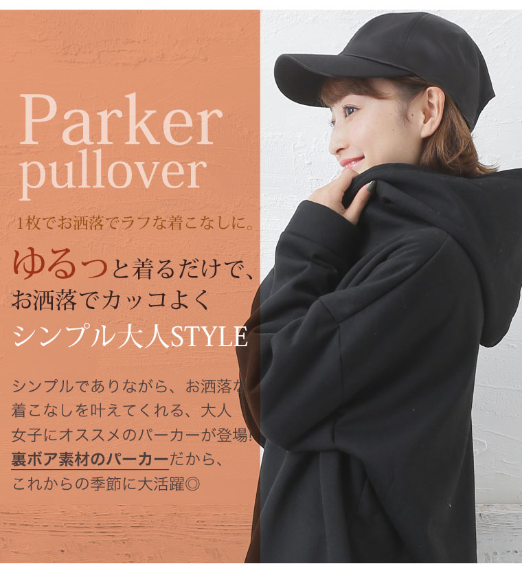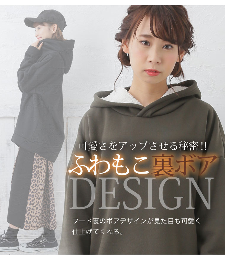 ふんわり裏ボアであったかスタイル♪ゆるっとパーカープルオーバー