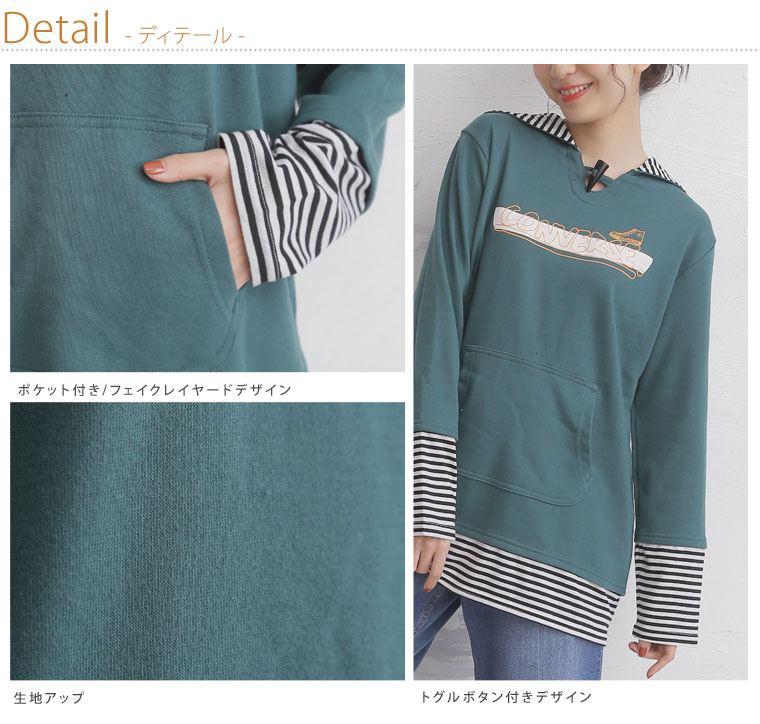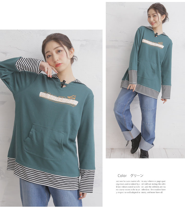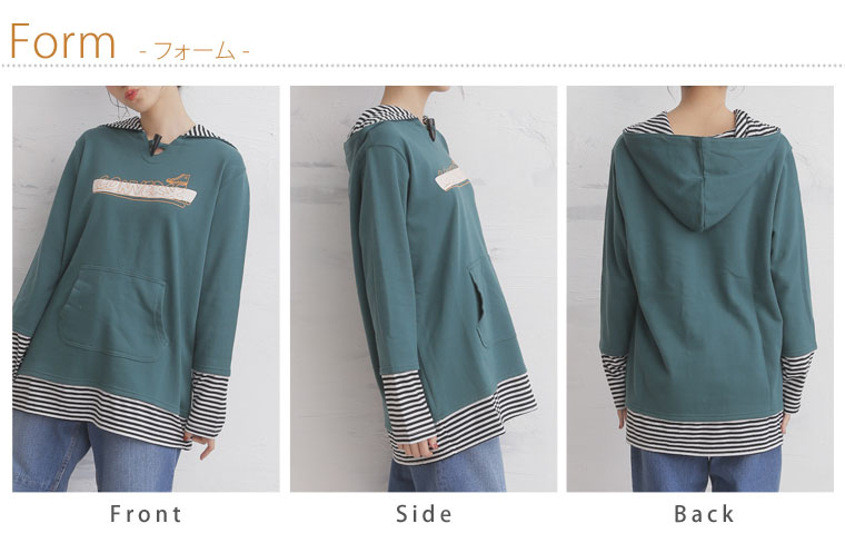 フェイクレイヤードのボーダー配色がアクセント。切替プルオーバー