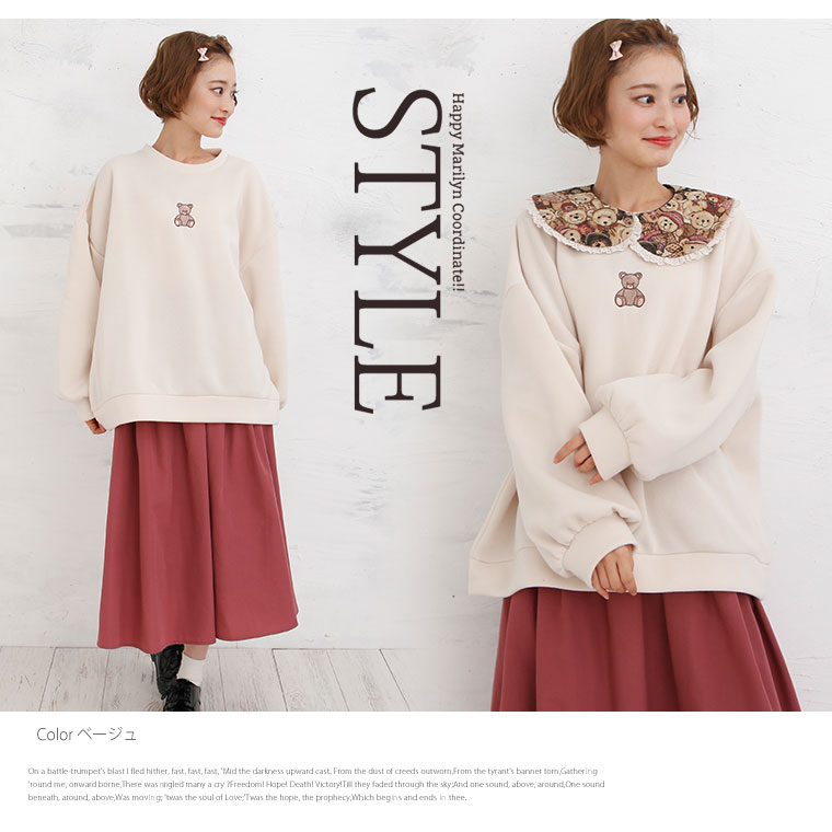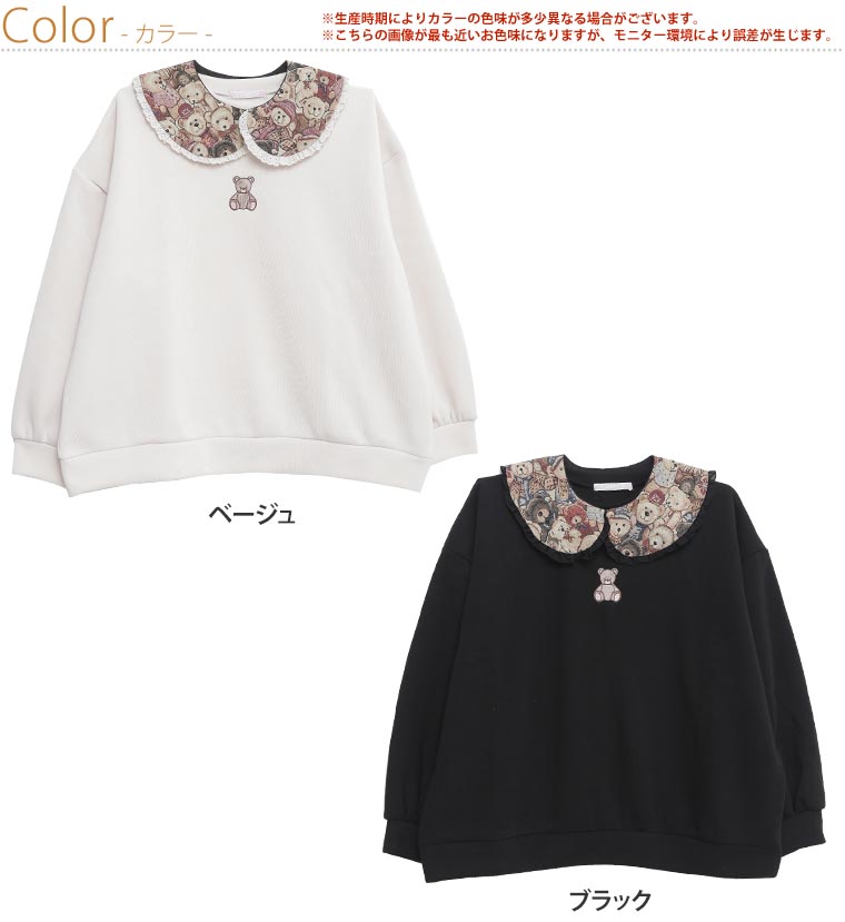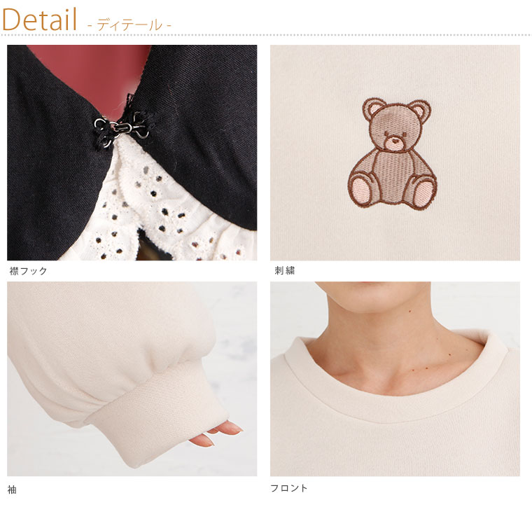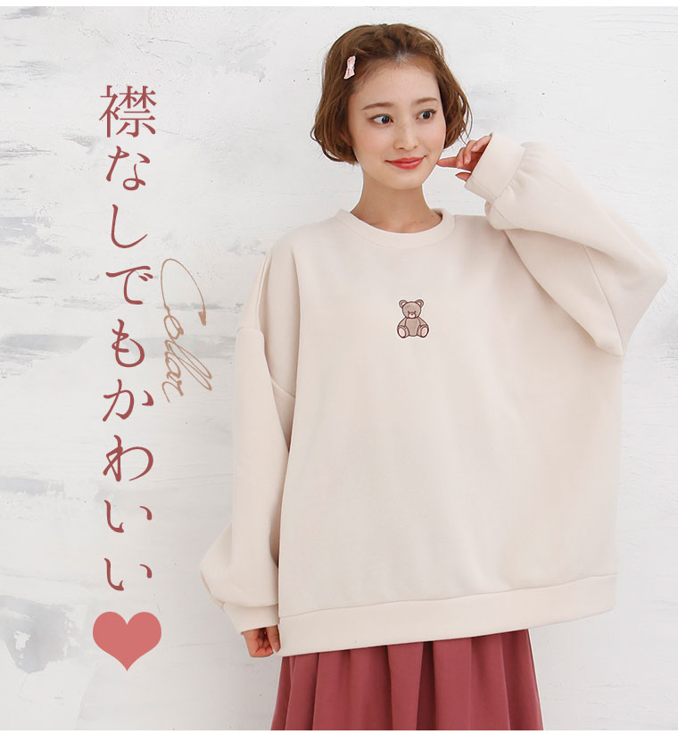 取り外しできるつけ襟がかわいい!くま刺繍トレーナー