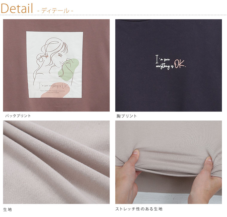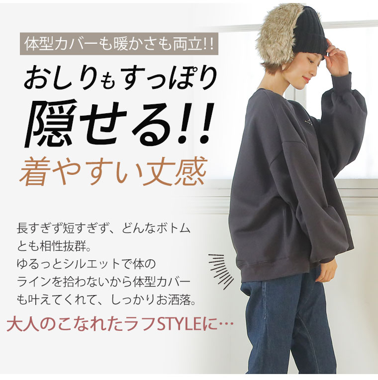 ゆったり可愛いシルエット。後ろ姿もかわいいバックプリントトレーナー
