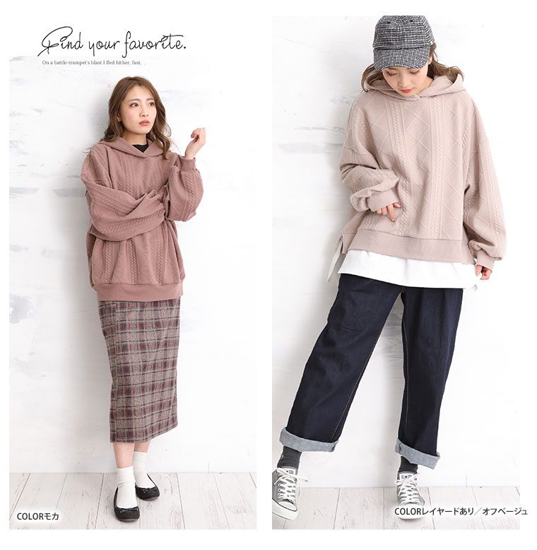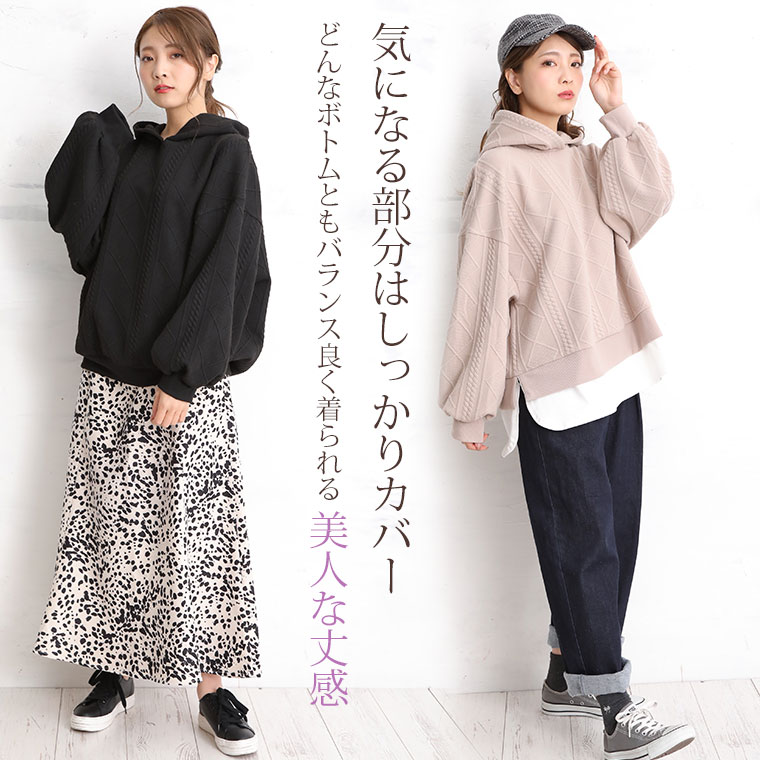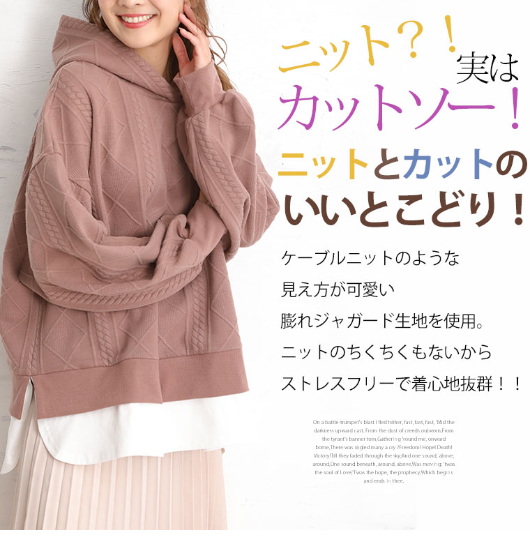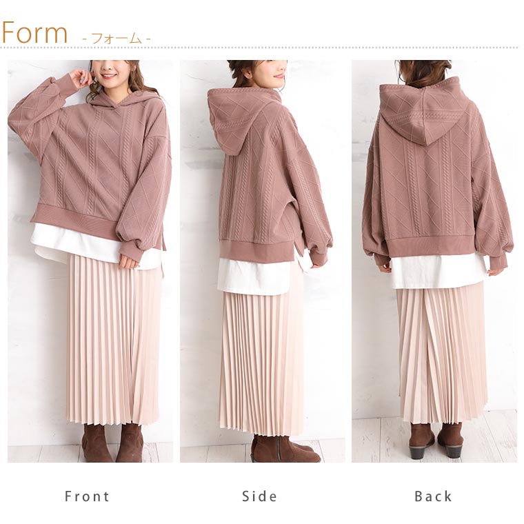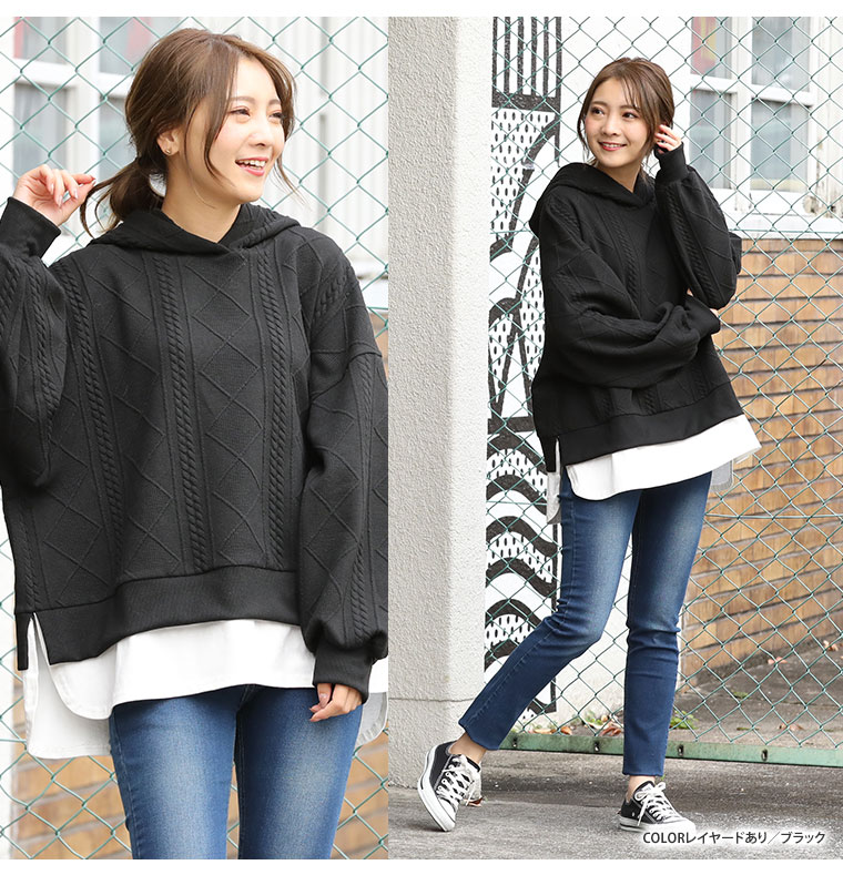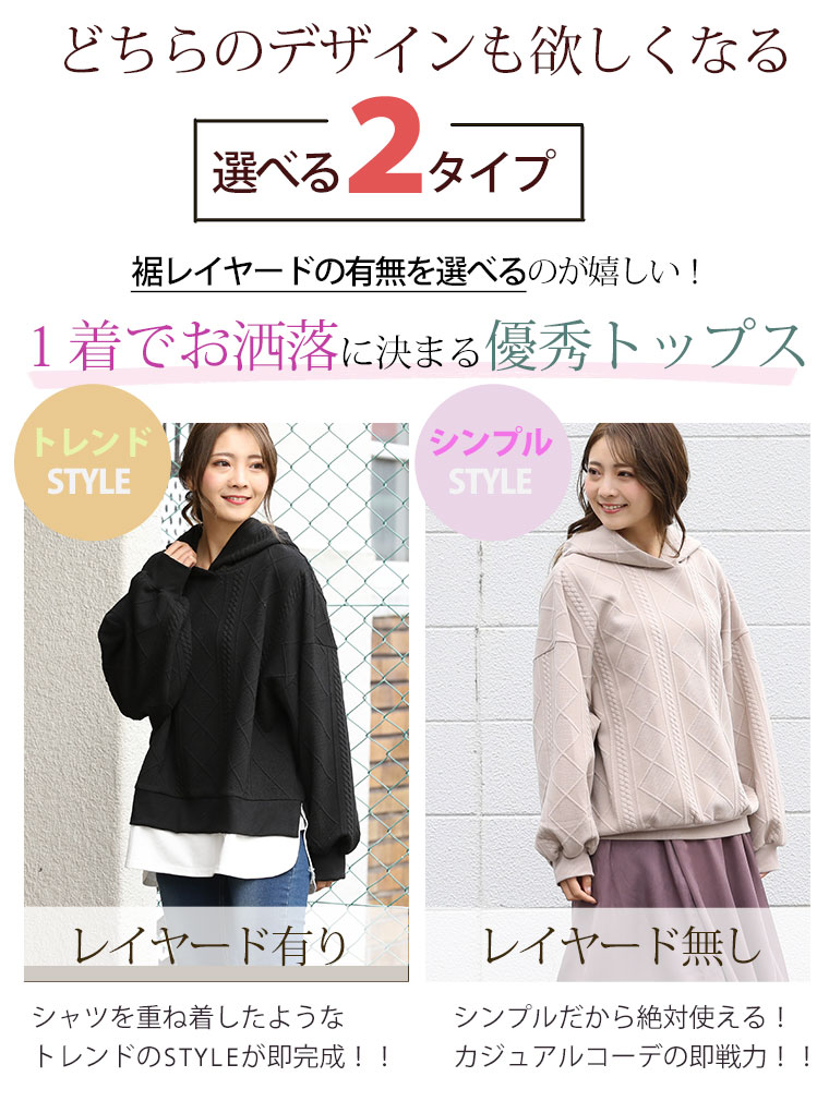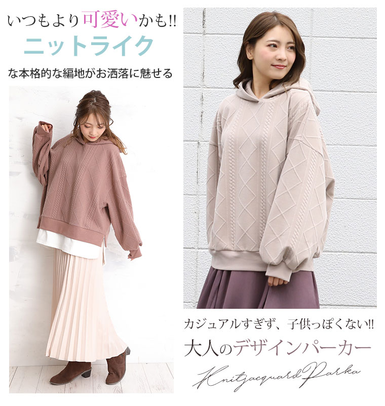 選べる2デザイン!ニット見え細魅せ ケーブルパーカー
