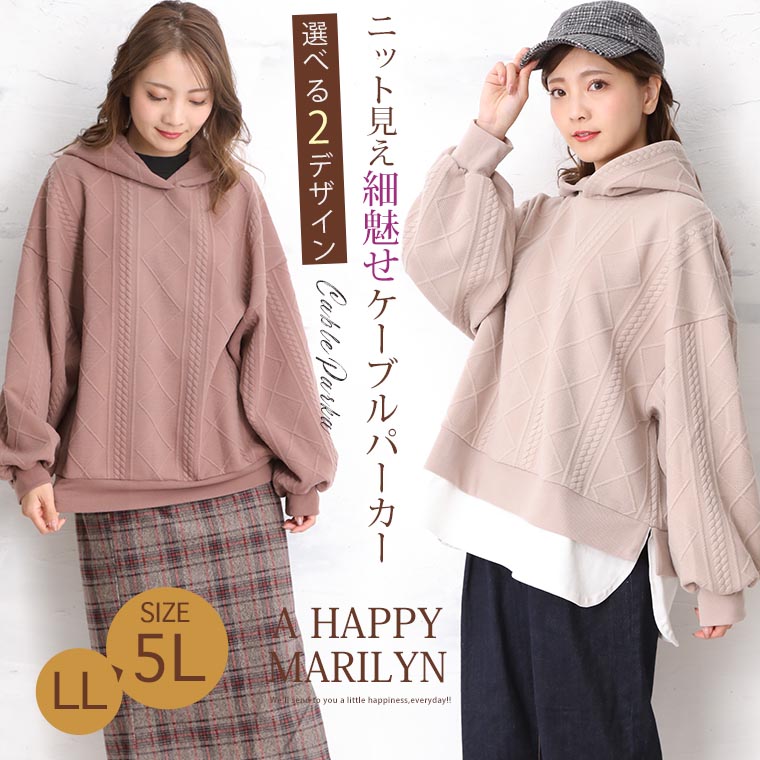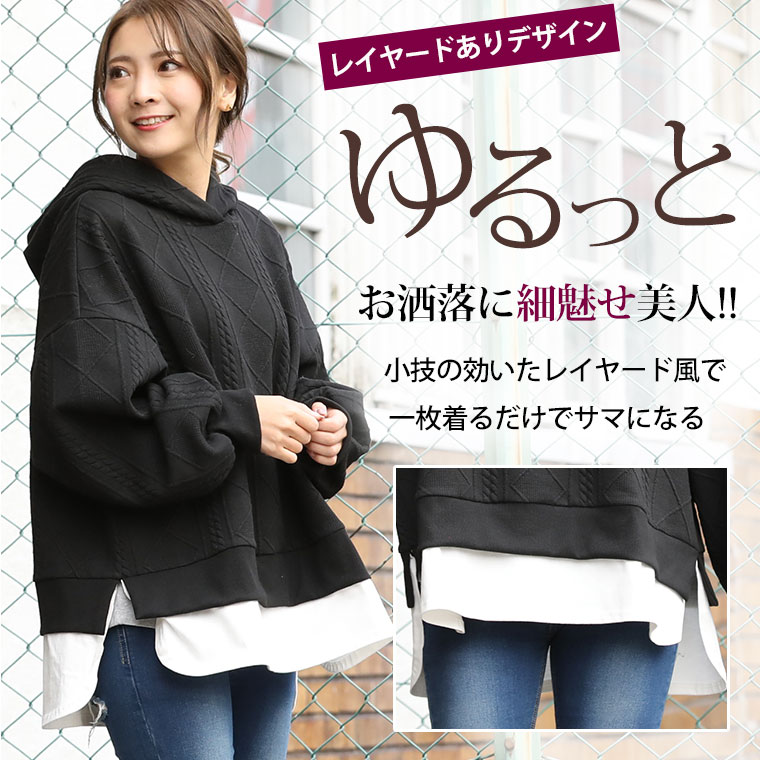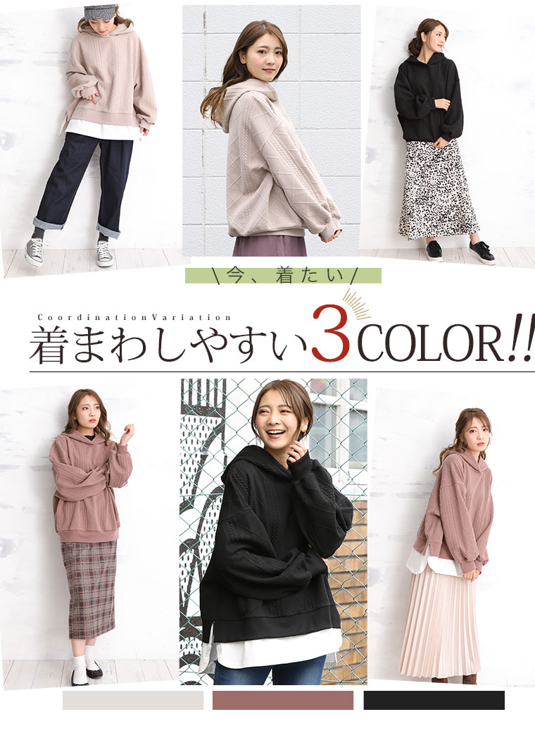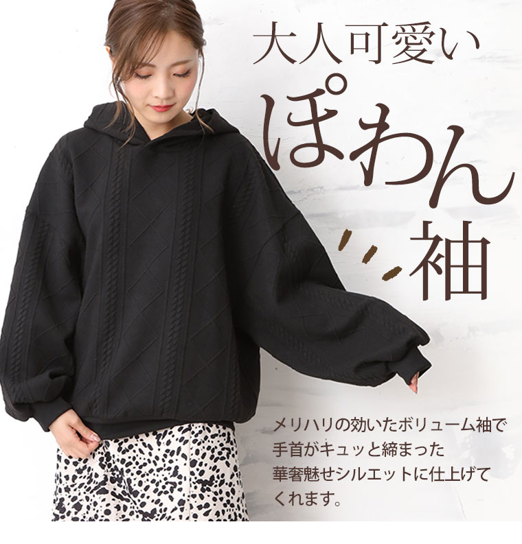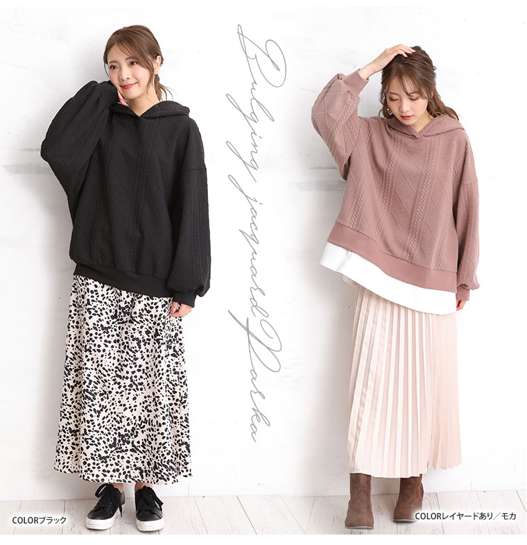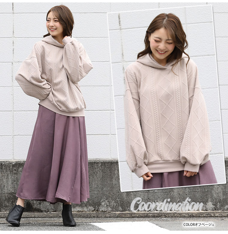 選べる2デザイン!ニット見え細魅せ ケーブルパーカー