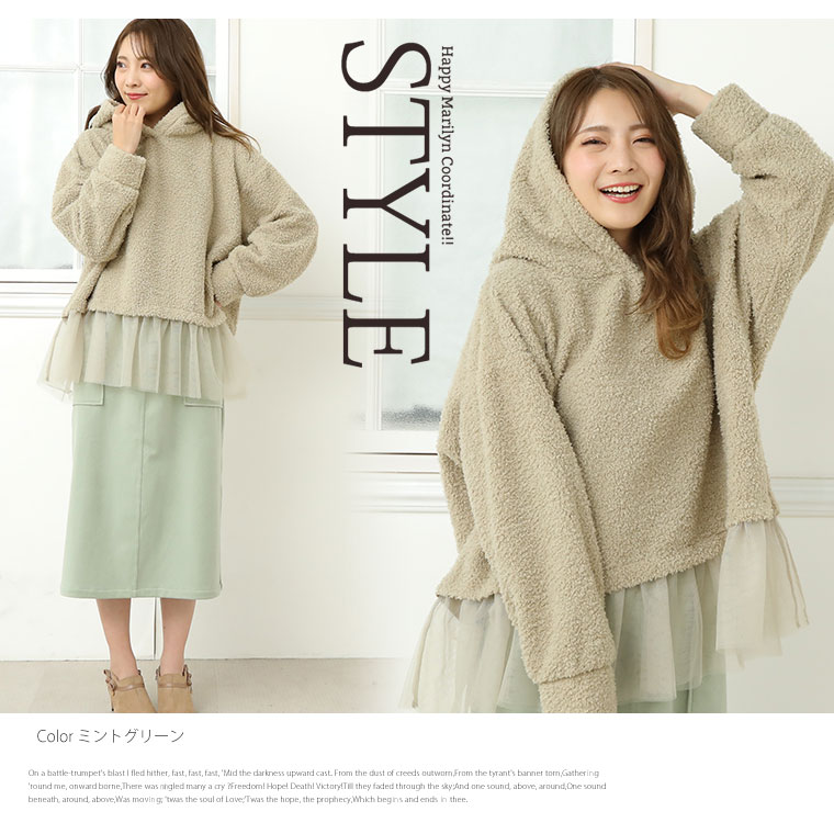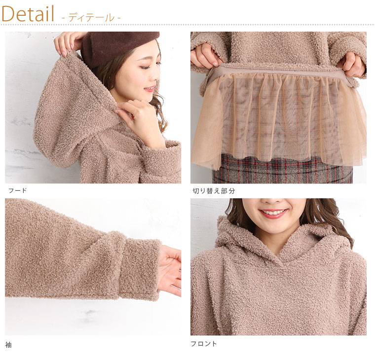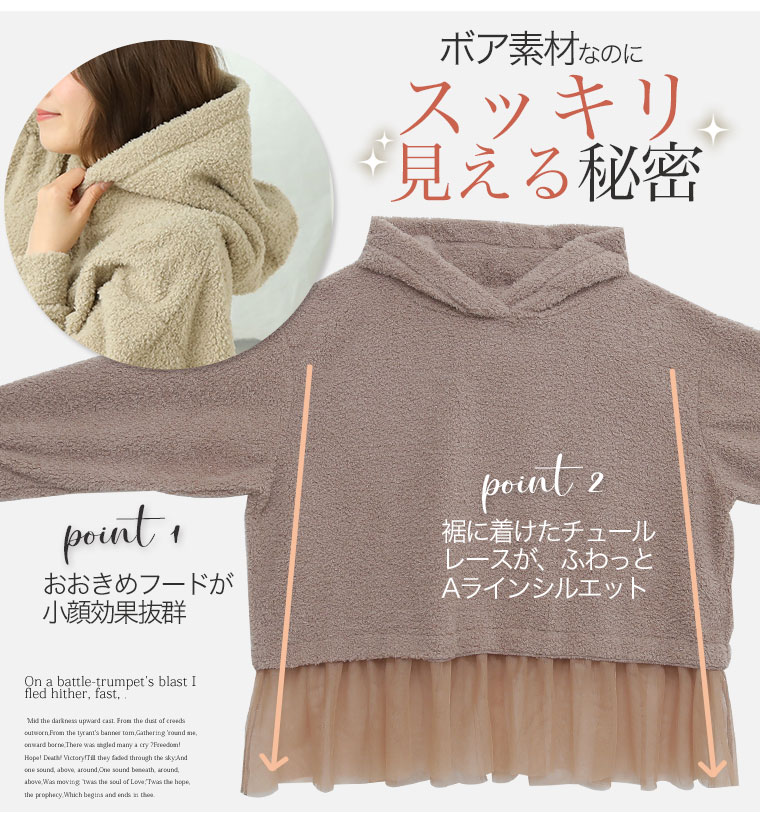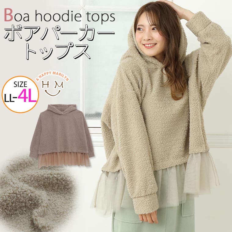 あったか嬉しいボアパーカートップス。スッキリに魅せるのにゆったり着れる
