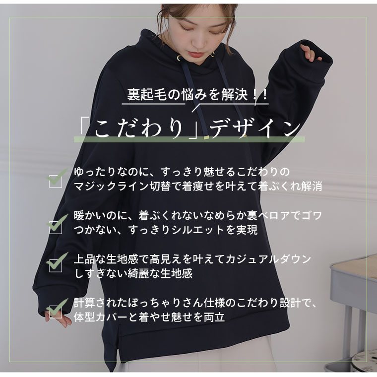 切り替えで叶える! 魔法の着やせ すっきり見せてゆったり着られる裏ベロアパーカー