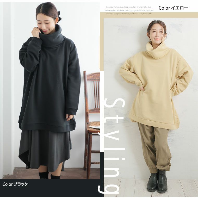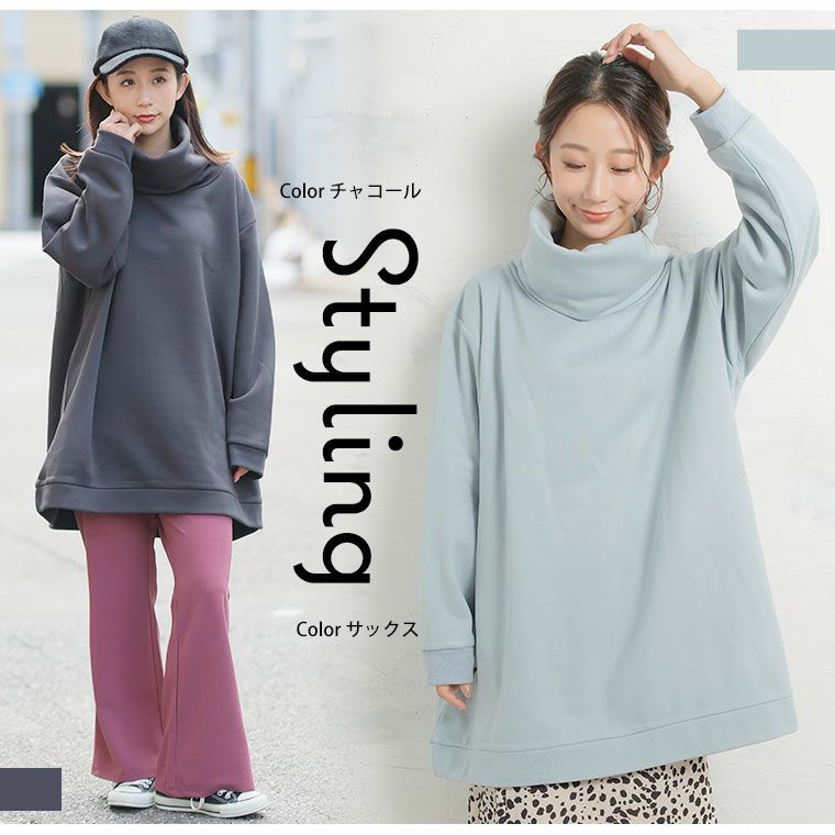 包み込まれる優しいあたたかな着心地の、裏起毛素材。ゆるシルエットで体型カバー!