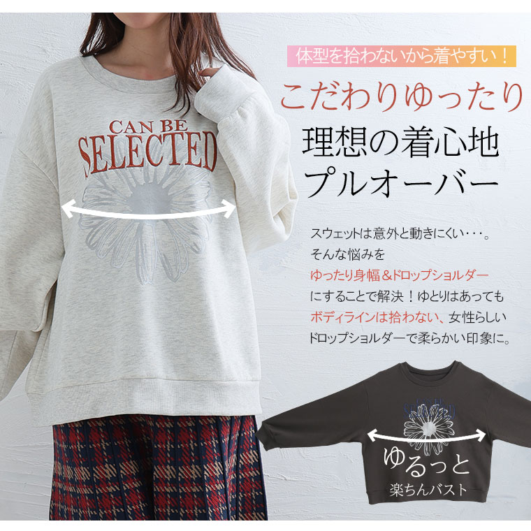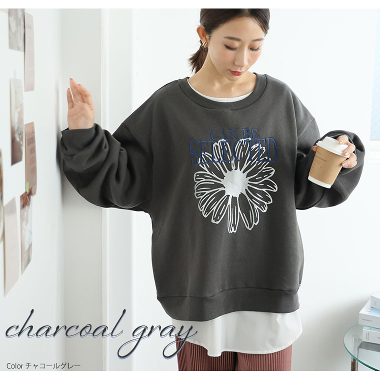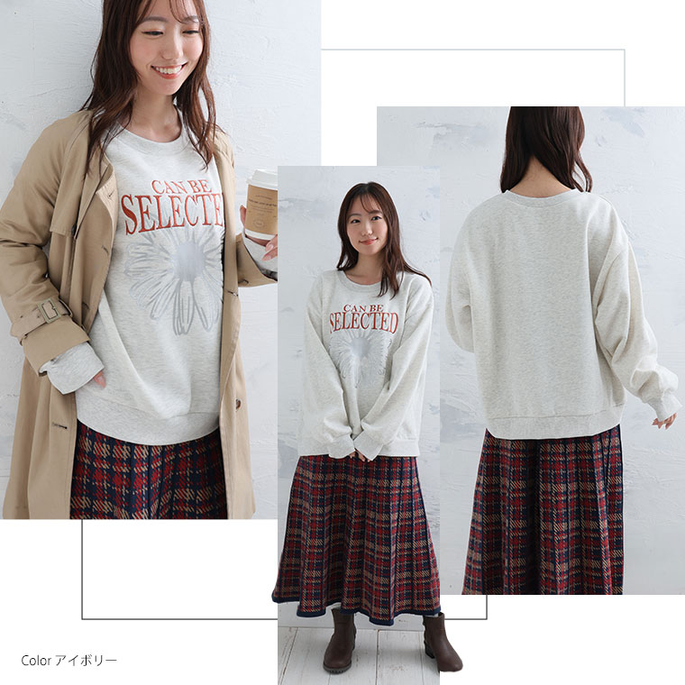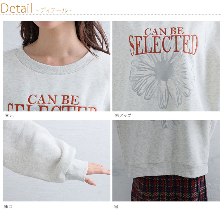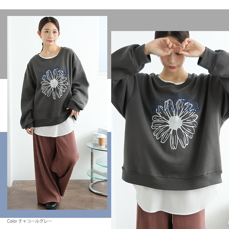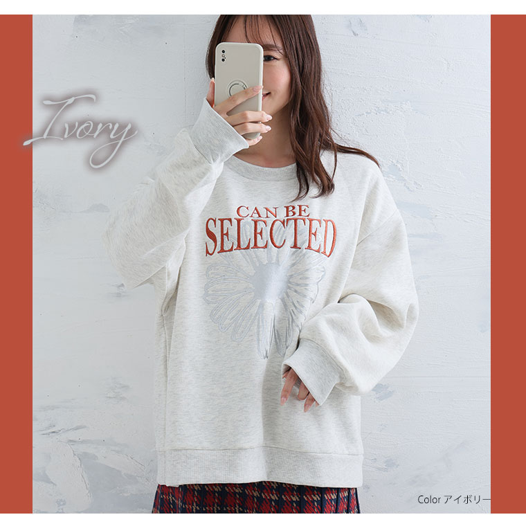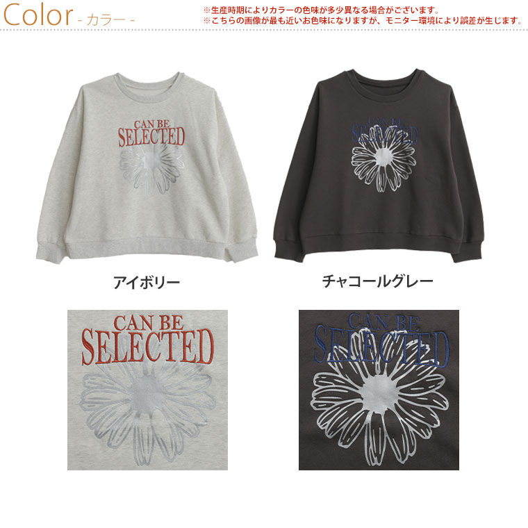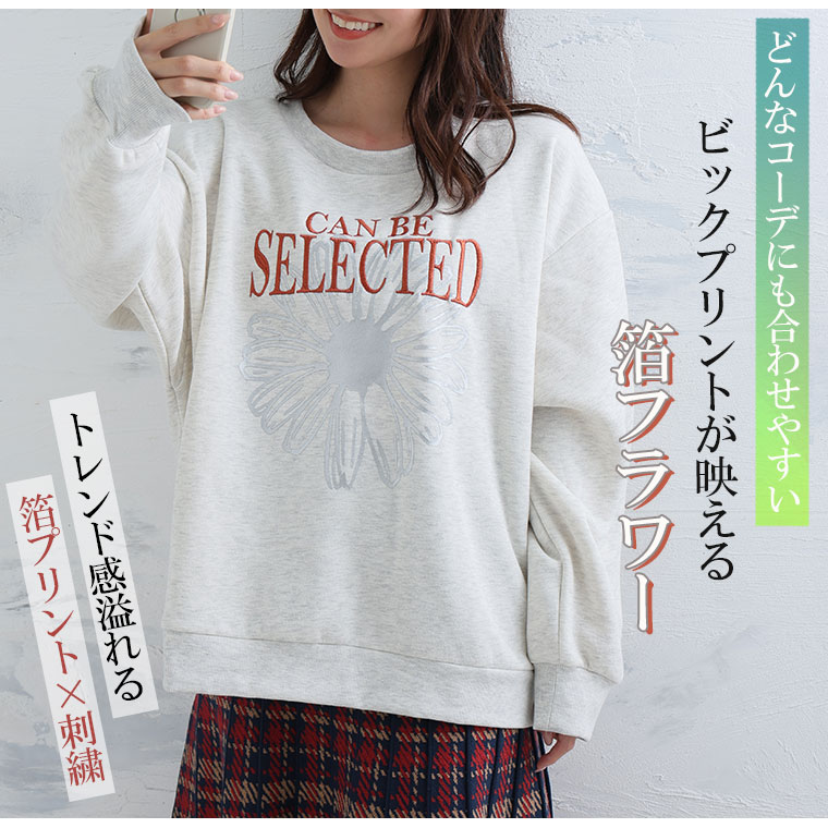 ビックプリントが映える、箔フラワーロゴ刺繍裏毛スウェット