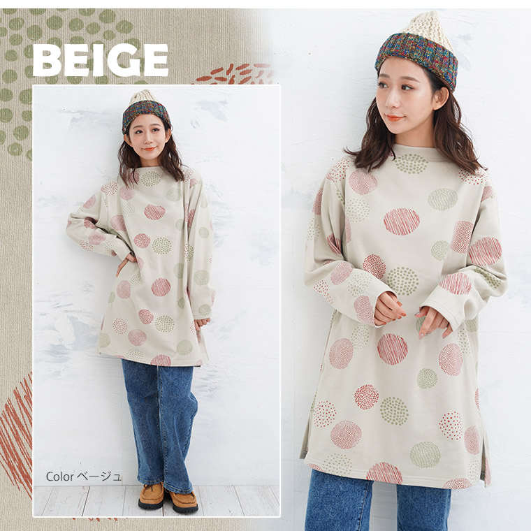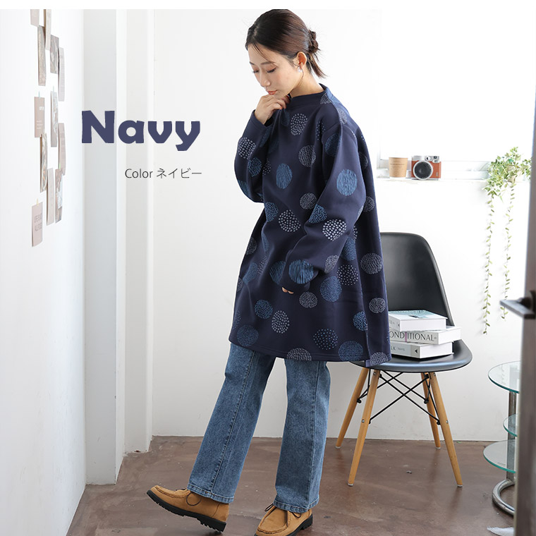 4. 大きいサイズ 裏起毛 モックネック チュニック