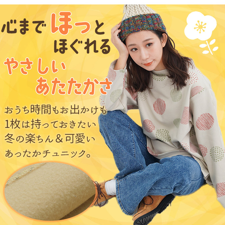 3. 大きいサイズ 裏起毛 モックネック チュニック