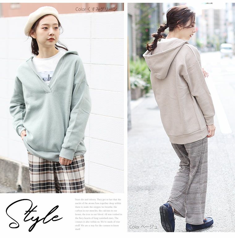 大人カジュアルに欠かせないパーカーやスウェットですが、カジュアルスタイルにはもちろんのことスタイリッシュに着こなせたりオシャレに着こなせるアイテムです。合わせるアイテムで、様々なスタイルを演出してくれるのでかならず1枚は持っておきたいです。重たさやカジュアルが特徴なのでボトムスをスッキリしないと野暮ったい印象になると思われがちですが、色味のあるロングスカートと合わせるとこなれ感のあるガーリーで大人なスタイルになります。ただ、ロングのスカートと合わせる場合はオーバーサイズよりもぴったりのサイズ感を選ぶほうがボリュームダウンした着こなしになるのでオススメです。また、部屋着にも使いがちなパーカーやスウェットですが、カラーを変更するだけでもぐっと印象が変わります。トレンドのニュアンスカラーだとオシャレで今っぽいコーデがすぐに完成します。ベージュのワントーンコーデだと肌馴染みが良いカラーなので、柔らかな雰囲気にまとめてくれたり、知的に見せてくれたりとパーカーなのにカジュアルすぎないコーデになるのも嬉しいポイントです。春先には爽やかなカラーで合わせると涼しげにみえる&センタープレスのパンツなどと合わせてキレイめに魅せるのが可愛いです。秋はアースカラーなど落ち着いた印象にチェンジしていけ、様々なパーカー、スウェットスタイルが楽しめます。3シーズン使えるので、何枚でもほしくなります。冬はコートやジャケットなどとも相性抜群で、裾から見せるレイヤードスタイルも大人気です。レイヤードするだけで、かなりオシャレ上級者になれるので、これは絶対にやってほしいコーディネートの一つです。つけ裾だと膨張もせず、夏でもオシャレに着用できるのでオススメです。