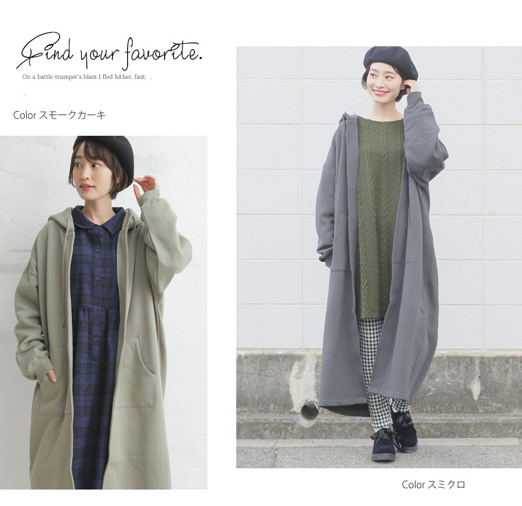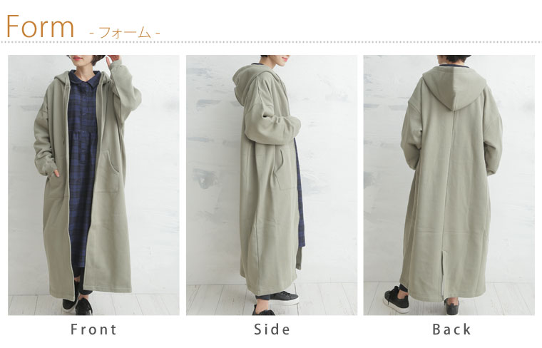 厚手生地でほっこり暖かスタイル♪スウェットパーカーロングガウン
