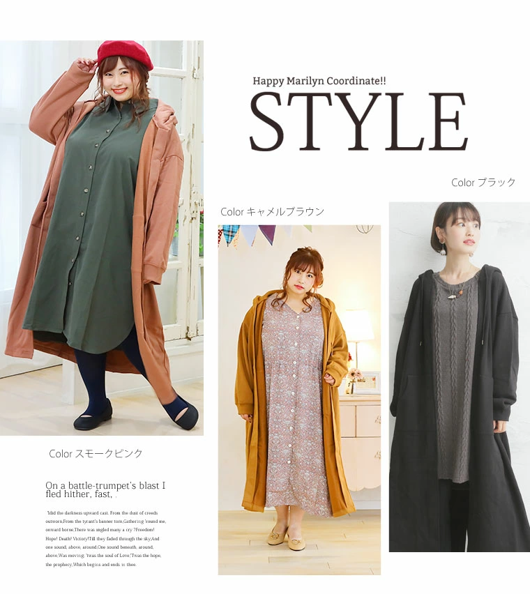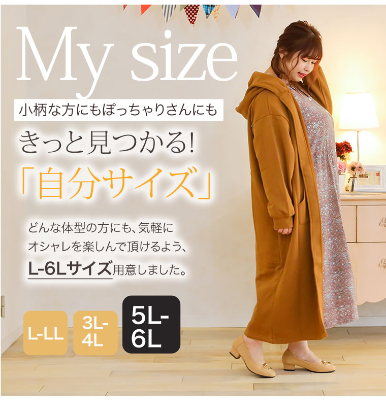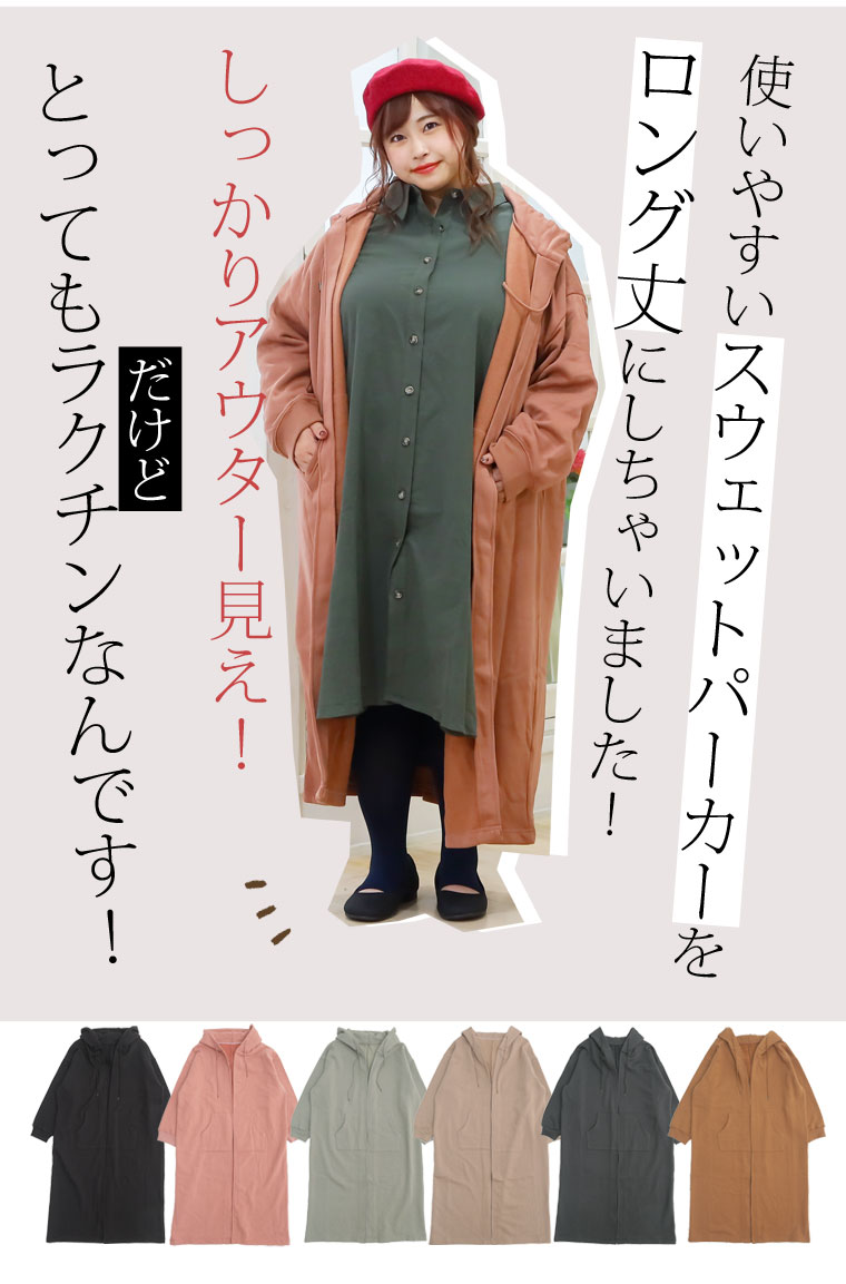 オリジナル トップス パーカー パーカ アウター LL 3L 4L 5L 6L ぽっちゃり ゆったり 可愛い お腹 胸周り お尻 腰周り 厚手 スウェット パーカー 長袖 ロングガウン